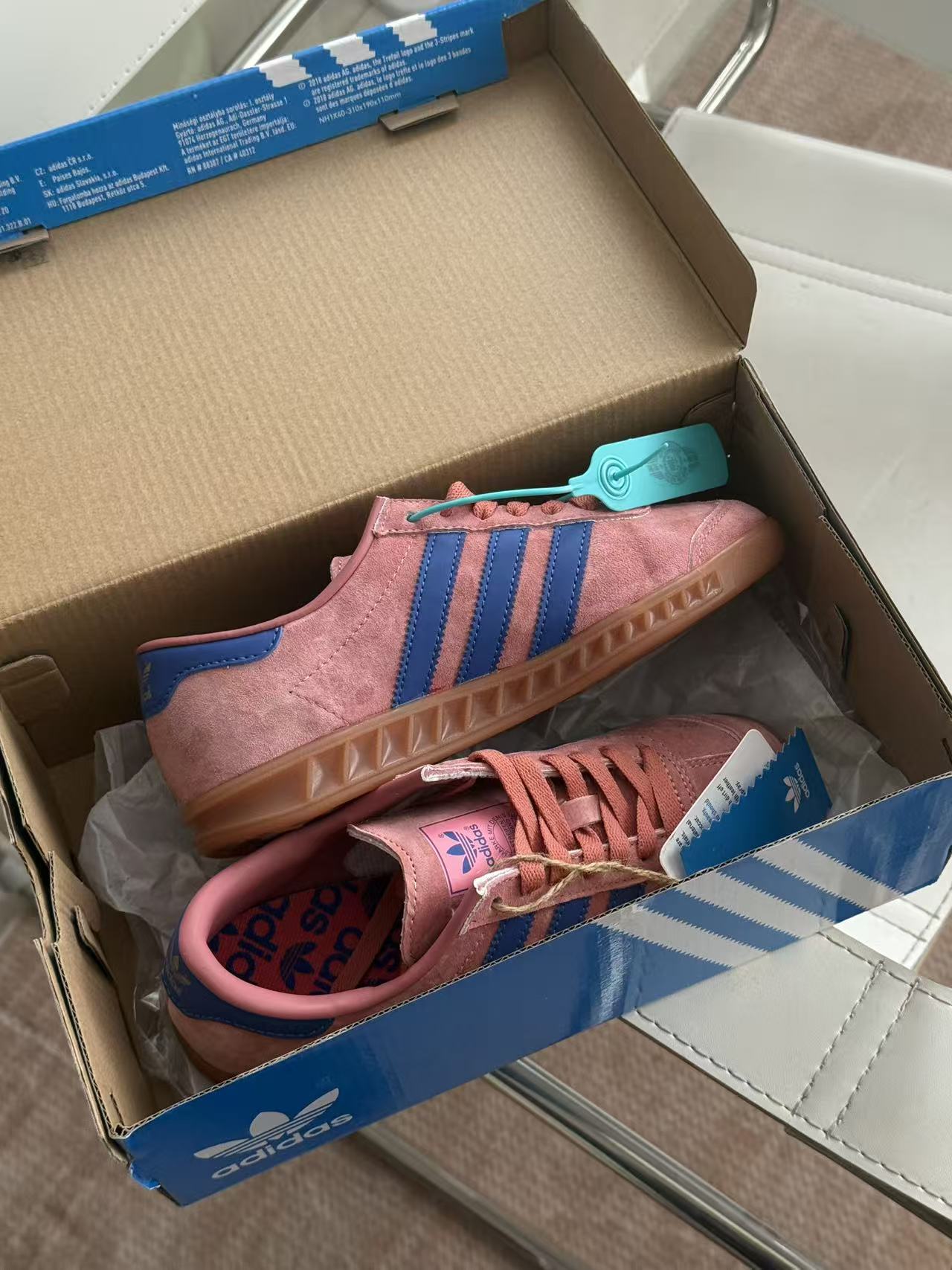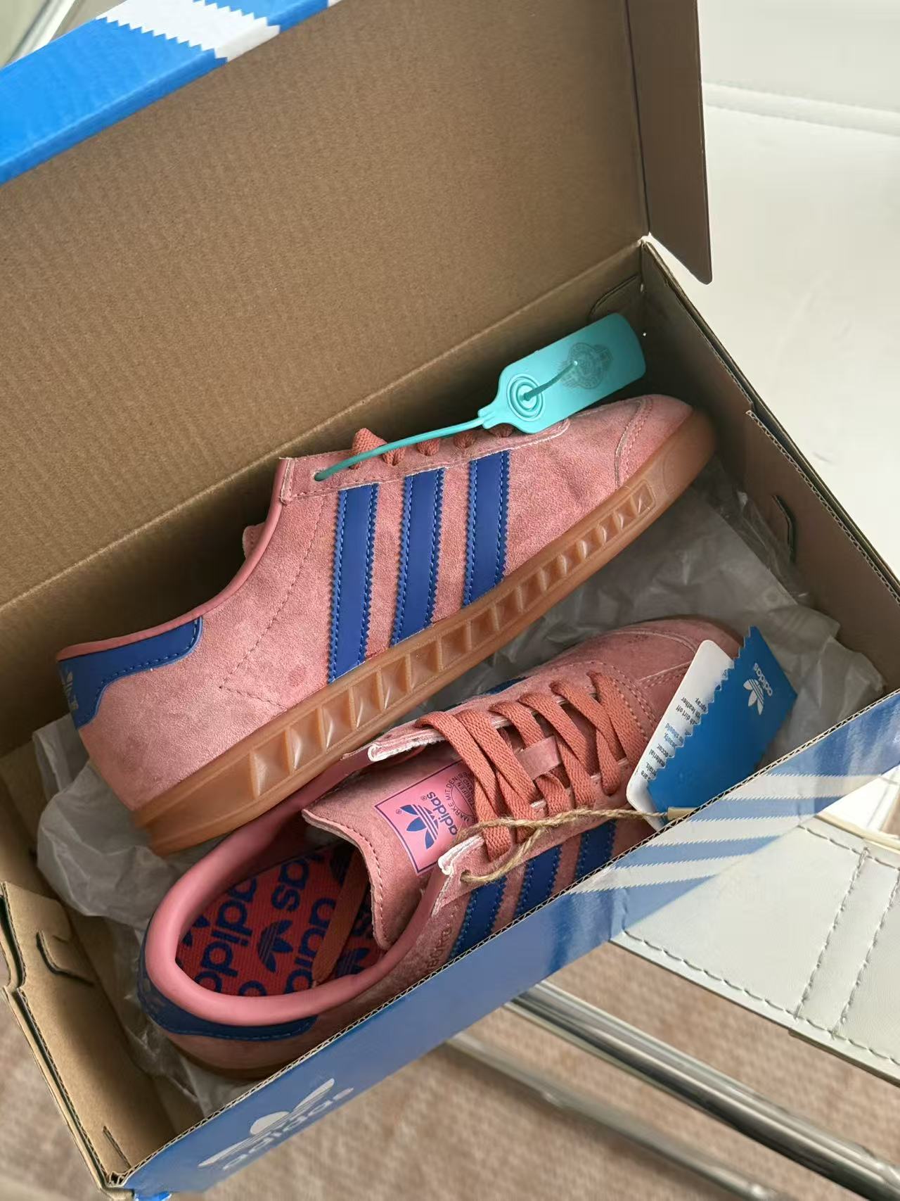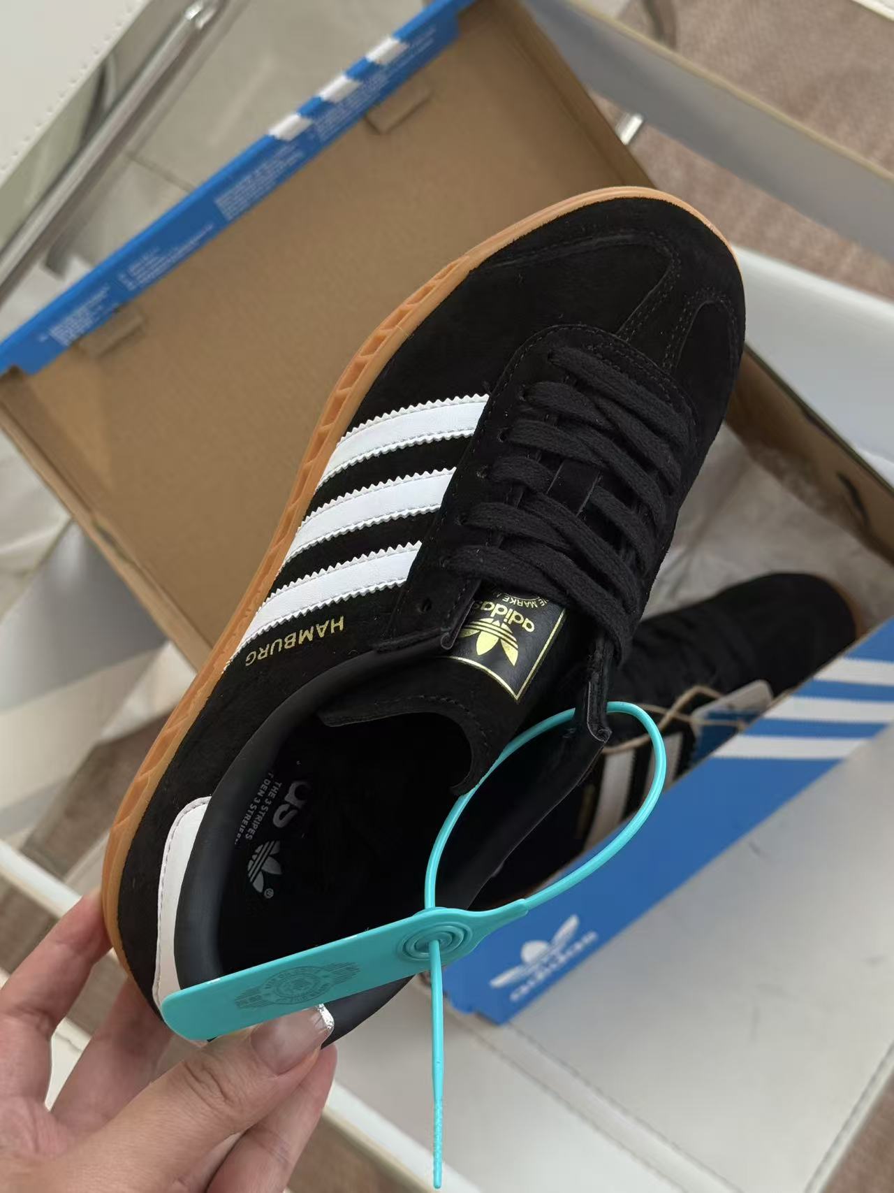 didas originals Hamburg 鞋面采用麂皮头层真皮材质,搭配三道杠设计