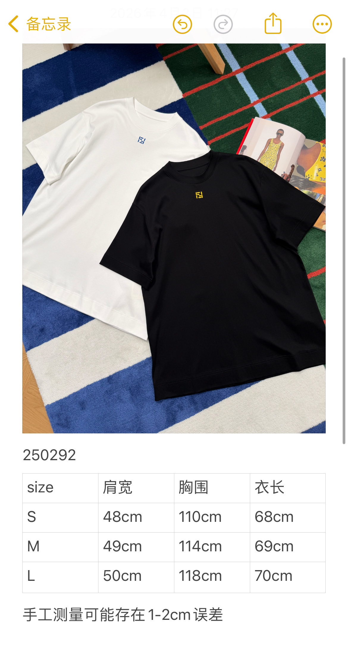 黑/白两个色,码数SML