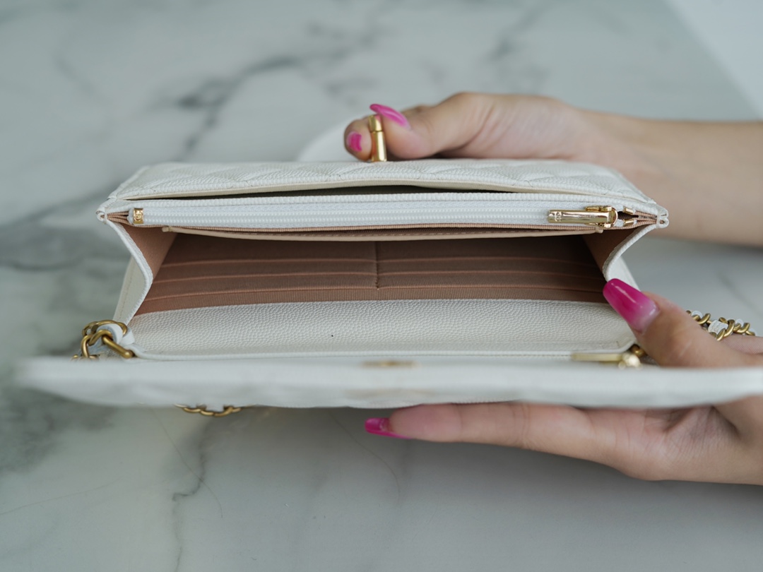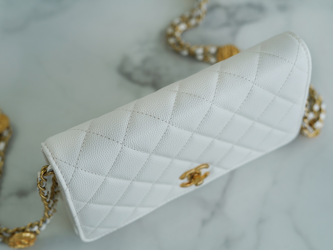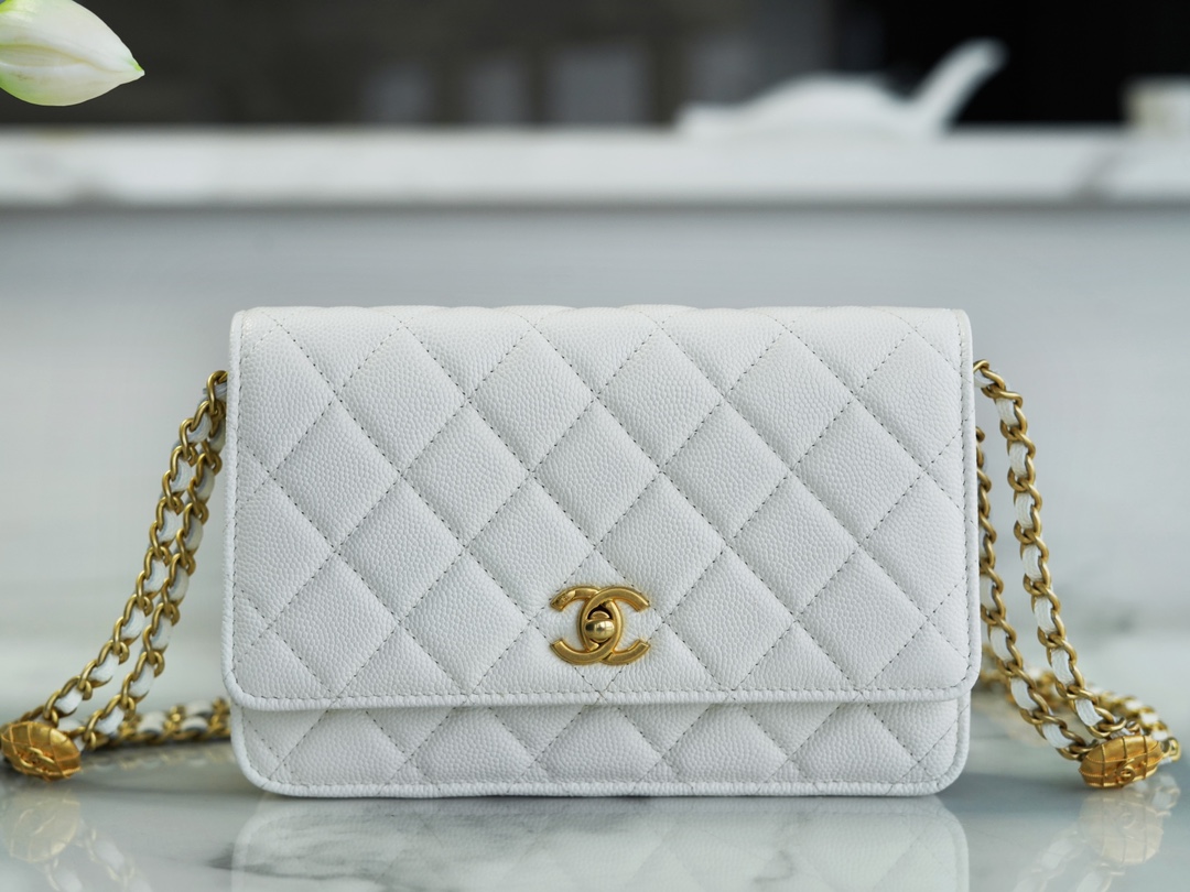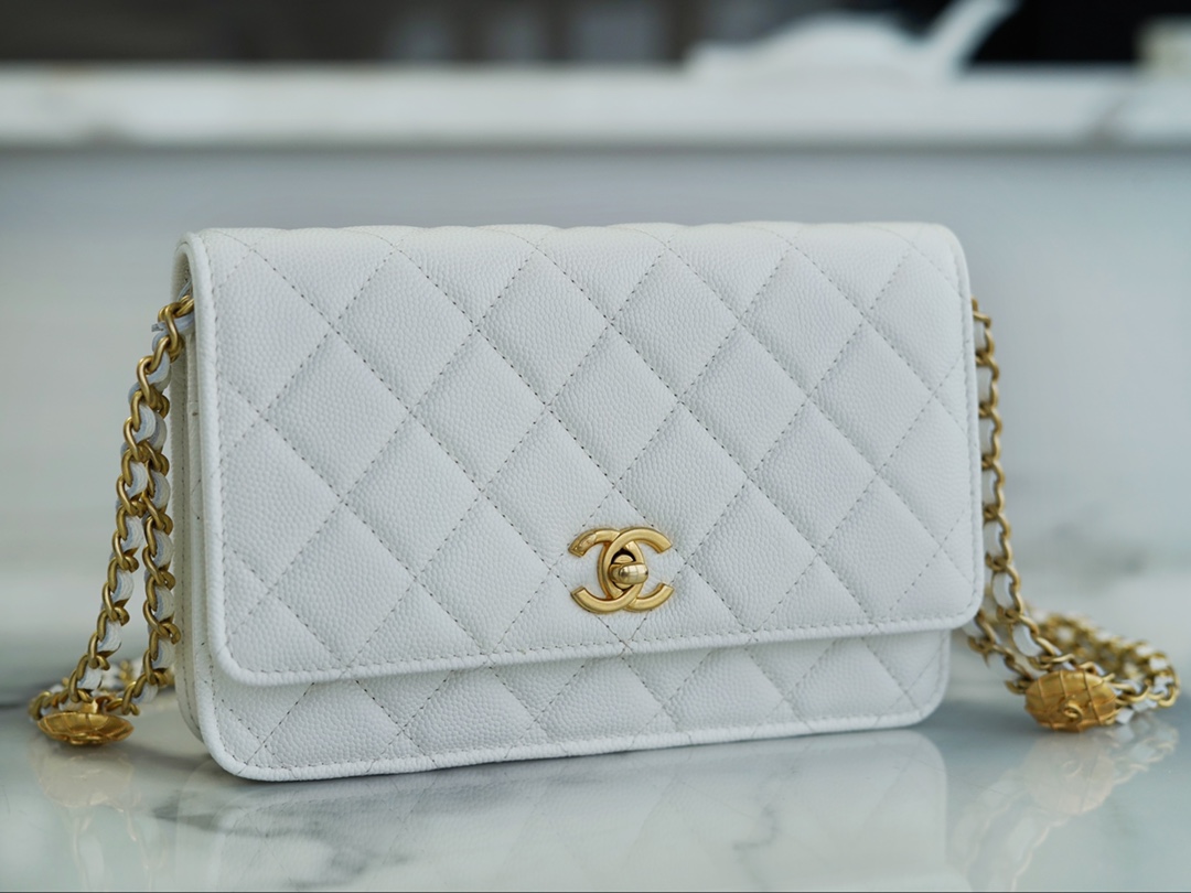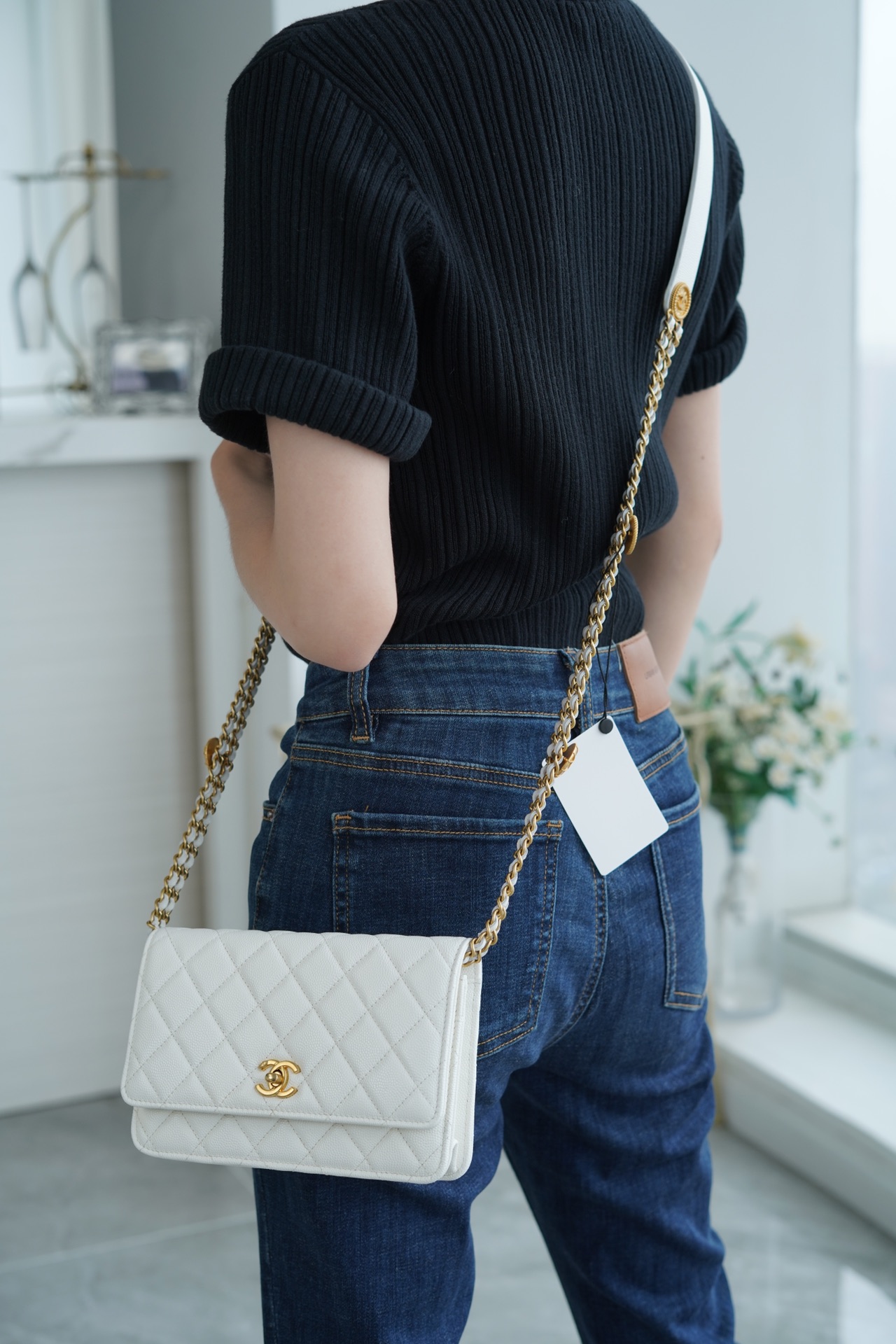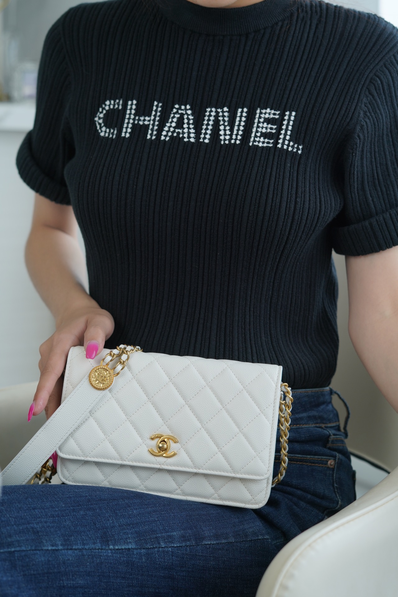 荔枝纹牛皮+复古金币扣,皮质亮面有光泽,耐磨性强!使用开合旋钮,比经典款设计更方便。皮穿链条中结合了不同图案的金币元素设计,每个都精雕细琢。集合了满满香奈儿经典元素组成的包包,一整个爱住啦??
