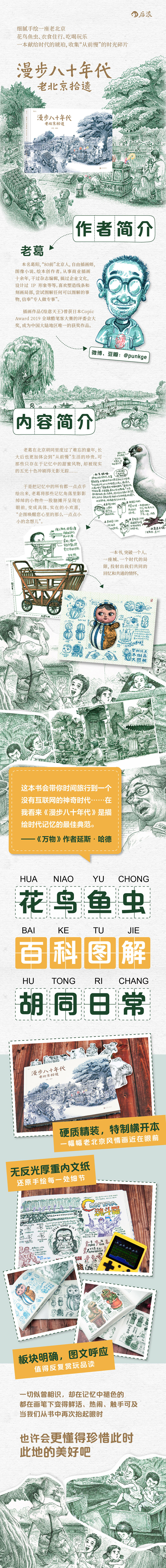 资深“80前”老葛在后海边上度过了难忘的童年,长大后经过不断的观察、思考,更加体会到从前那种生活的珍贵,于是他想“通过画笔呈现儿时的碎片化记忆”,“唤醒您心里的那么一点点小小的念想儿”。书中有人物,有风景,有物件的“图解”,衣食住行、花鸟鱼虫,无所不包,几乎每一页都可以提取出来供人单独欣赏,合起来则共同构成了一幅用情怀渲染过的老北京风情画。