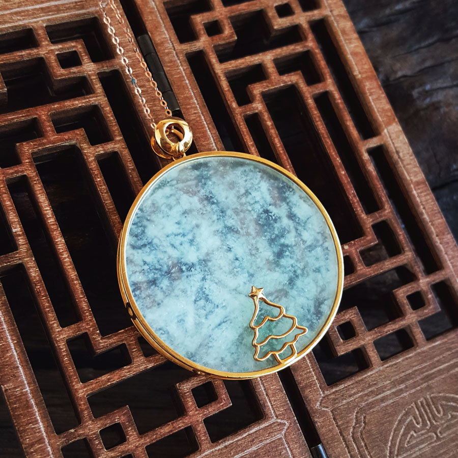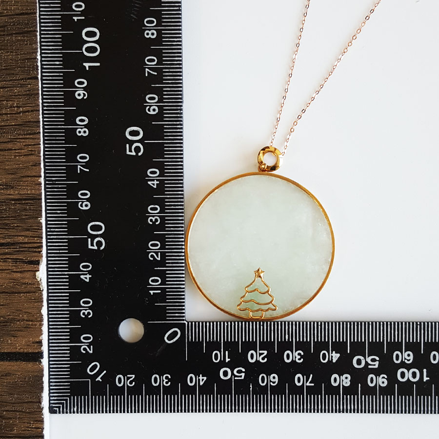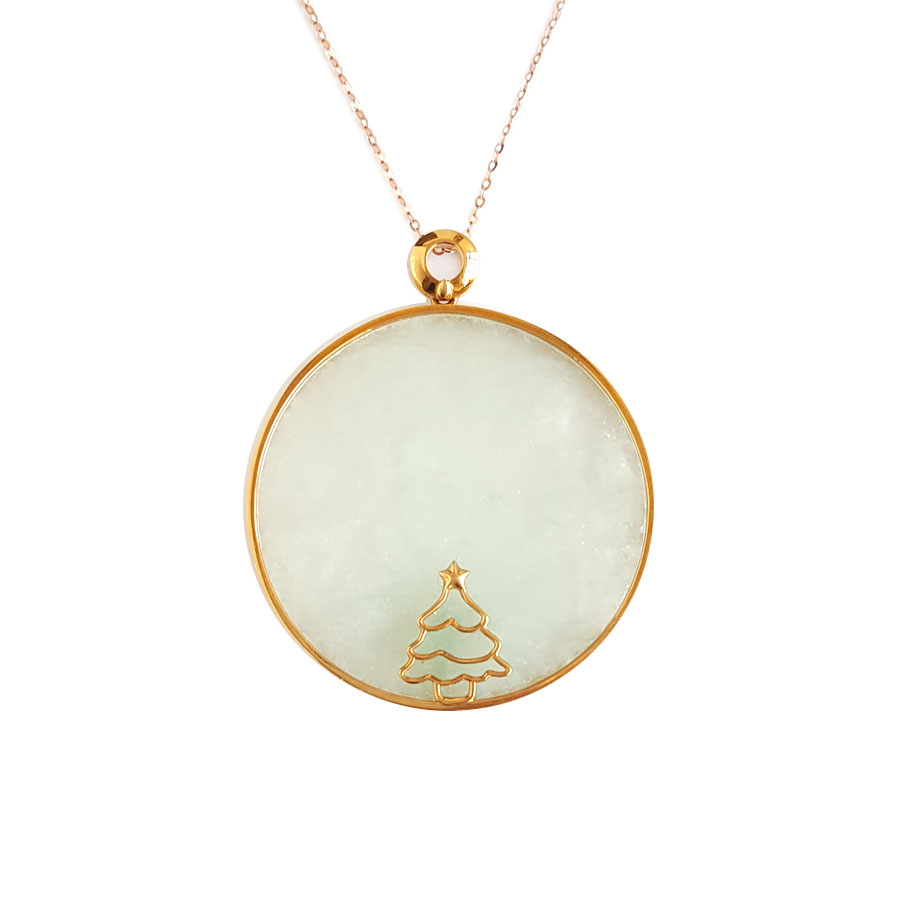 名称 | AU750玫瑰金镶天然细腻冰种木那雪花棉圆形无事牌翡翠吊坠项链 |