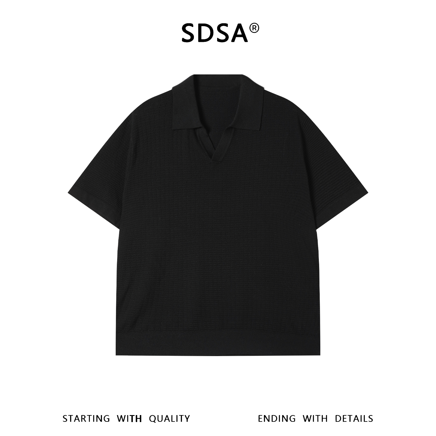 SDSA男装2026新款轻奢潮牌简约纯色提花格子小V翻领短袖T恤百搭