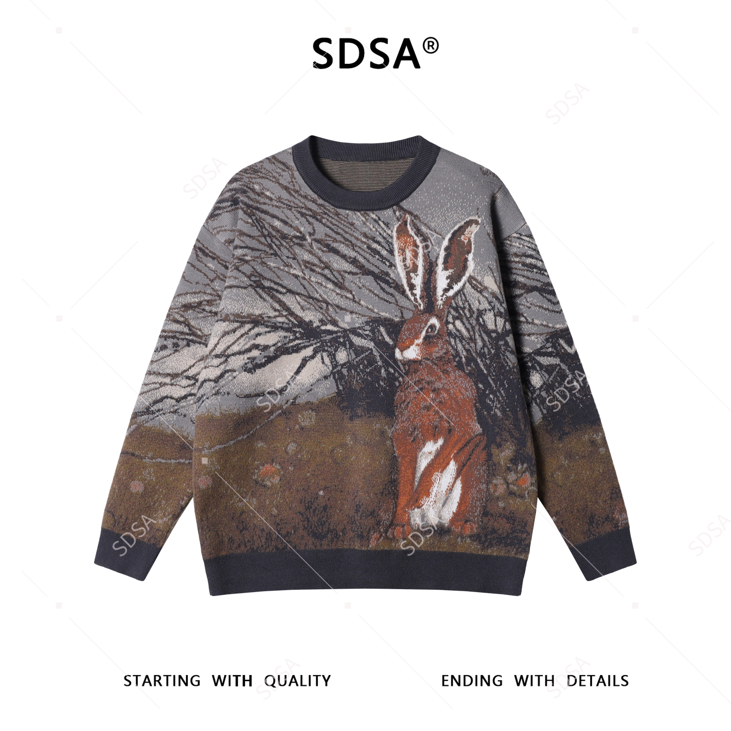 88118SDSA男士秋冬新款痞帅男装简约彩绘卡通兔子圆领毛衣百搭复古上衣