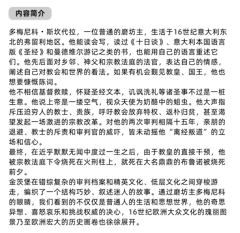 奶酪与蛆虫:一个16世纪磨坊主的宇宙