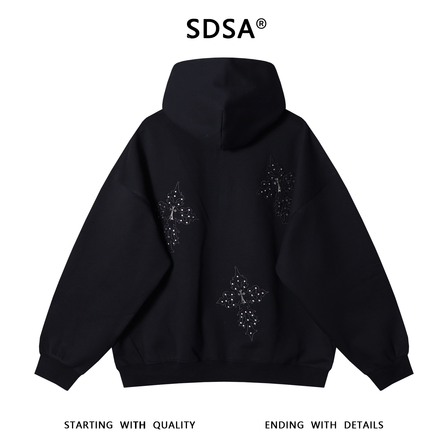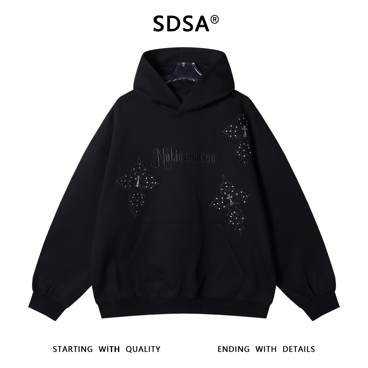D012SDSA秋冬新款痞帅男装潮牌刺绣字母连帽卫衣十字金属装饰百搭上衣