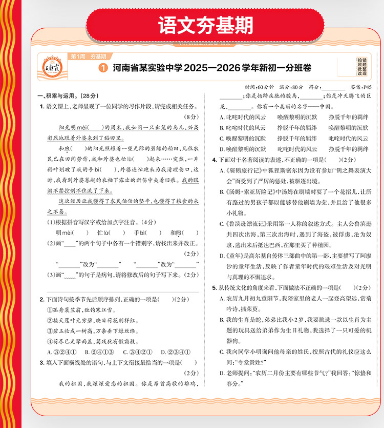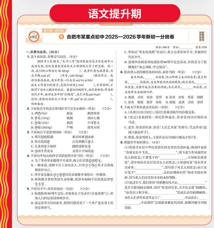 2025秋上册王朝霞活页暑假阅读1-6年级语文