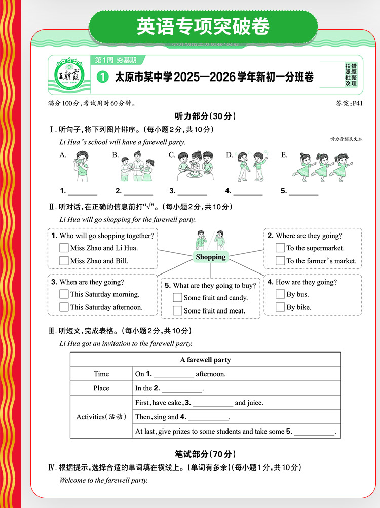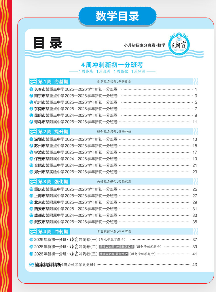 2025秋上册王朝霞活页周末小卷1-6年级周周测语数英