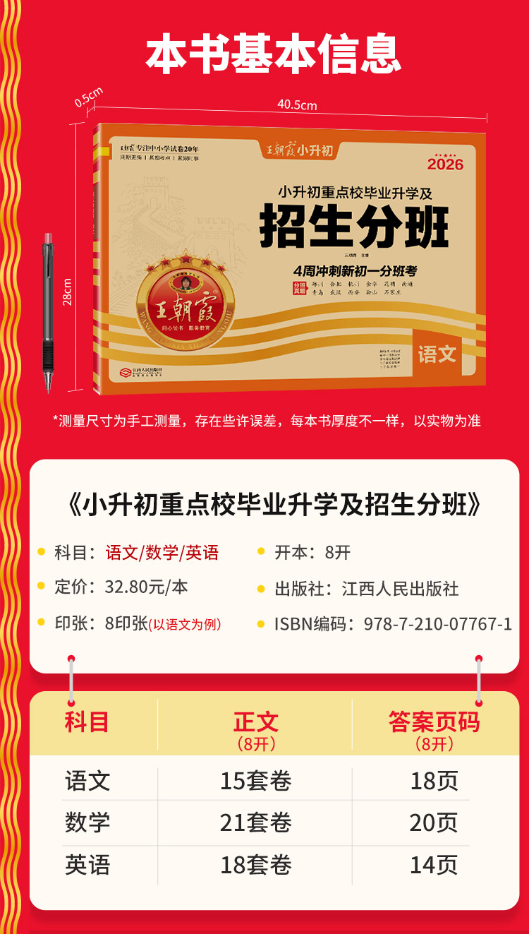 2026小升初重点学校毕业升学招生分班卷冲刺卷语数英各地通用