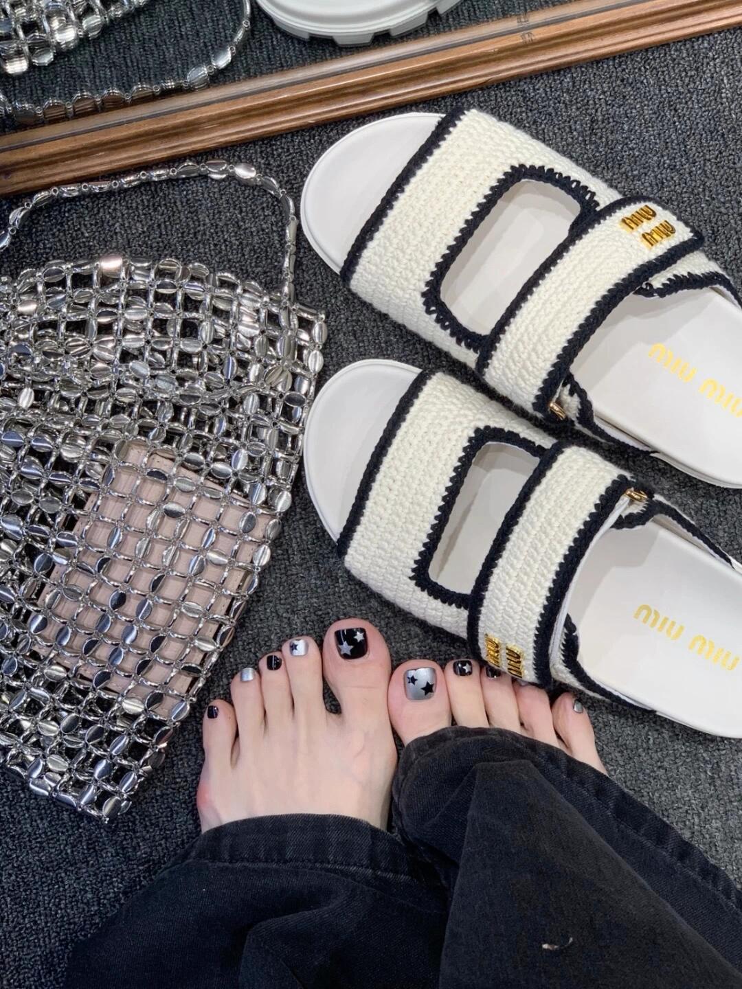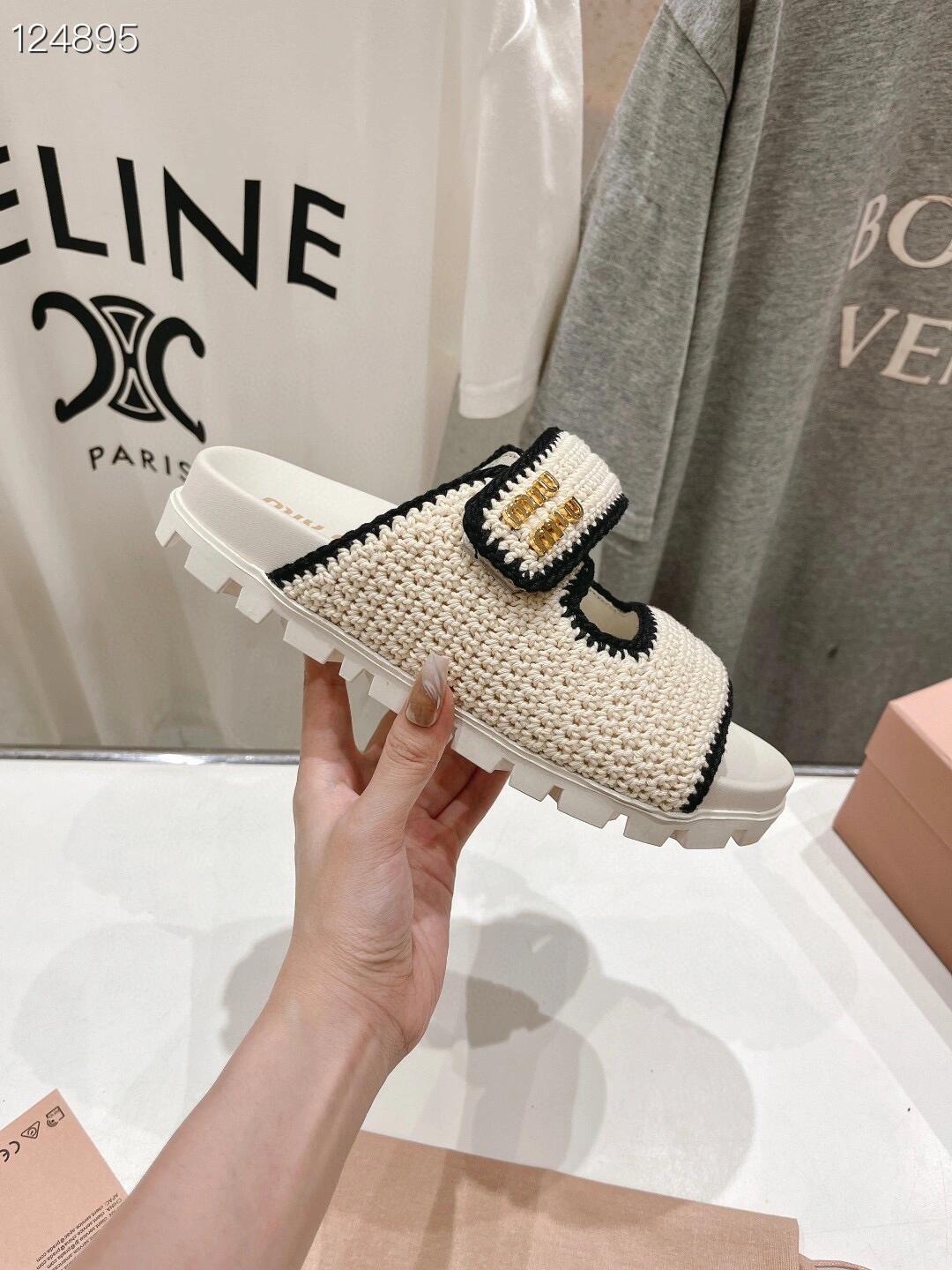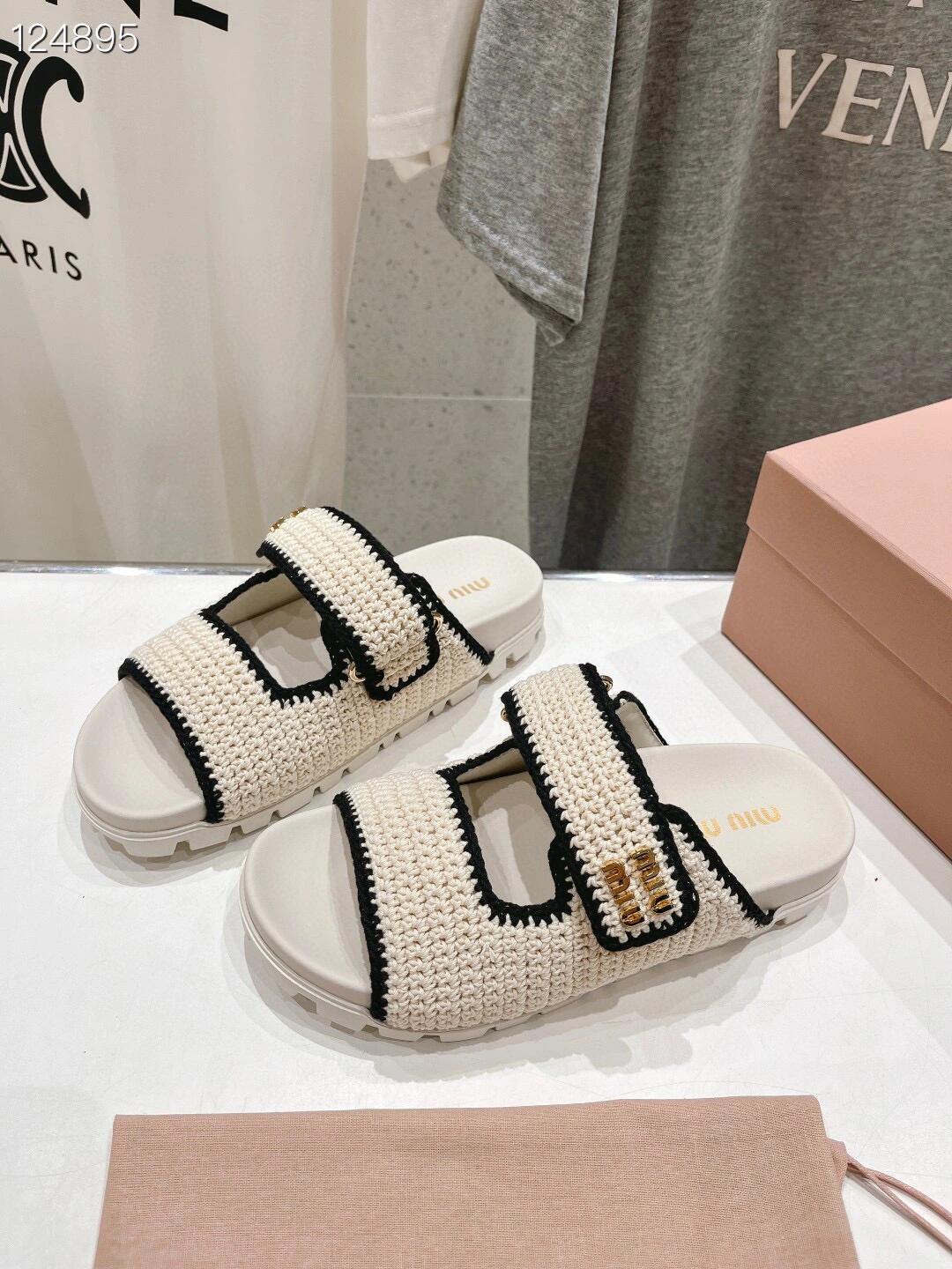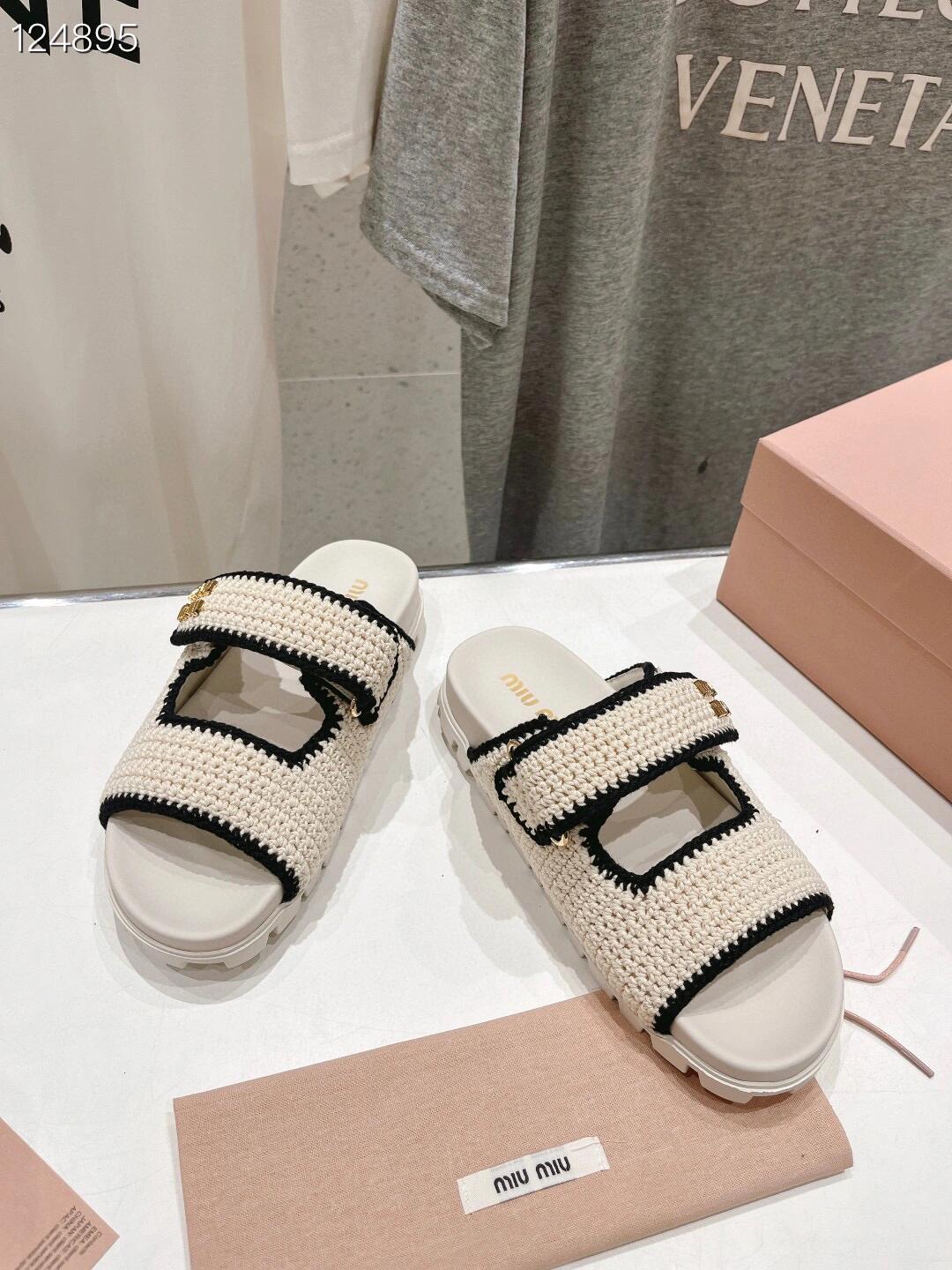 MiuMi*缪缪两带魔术贴!!编织 厚底 平底 拖鞋