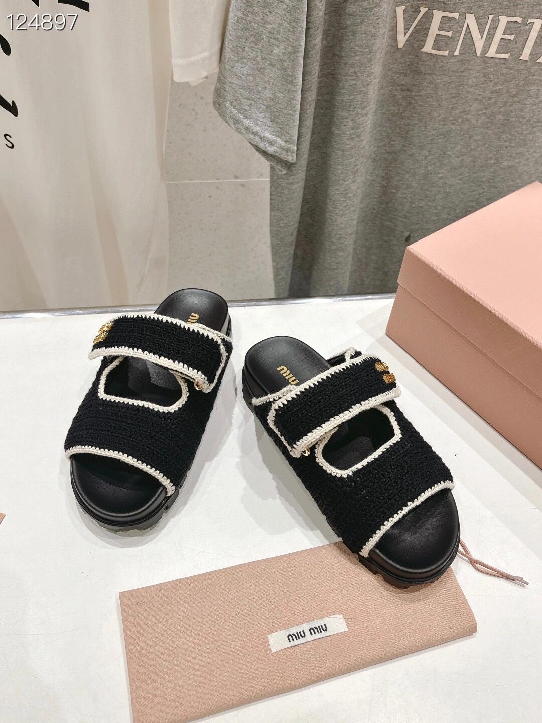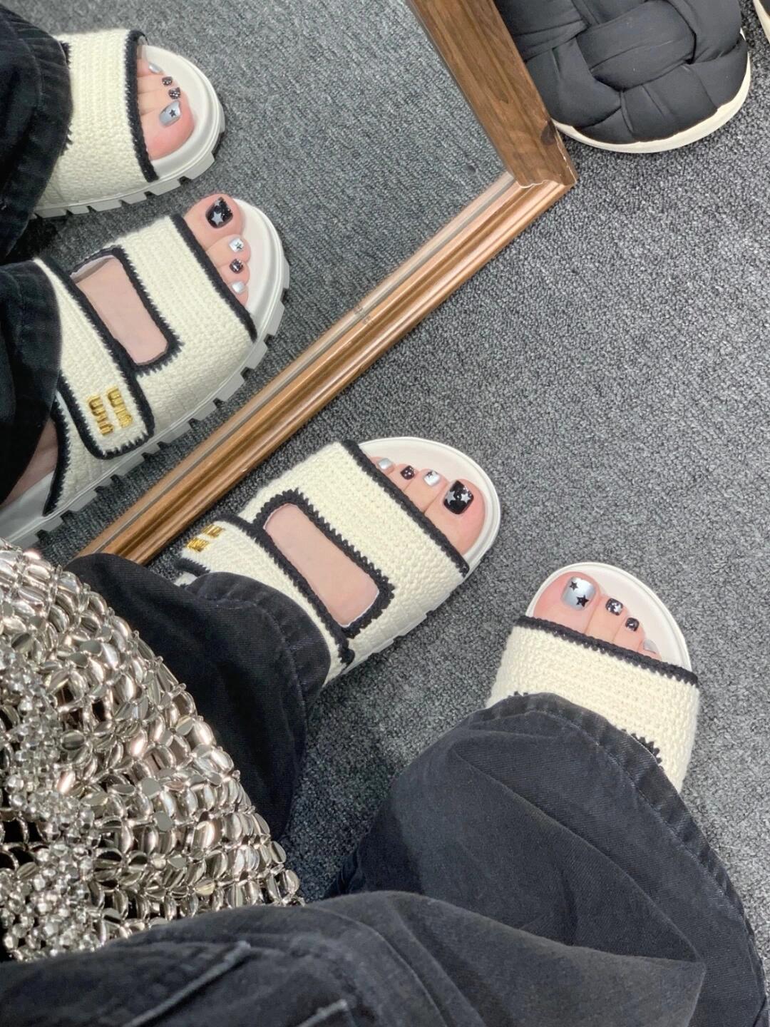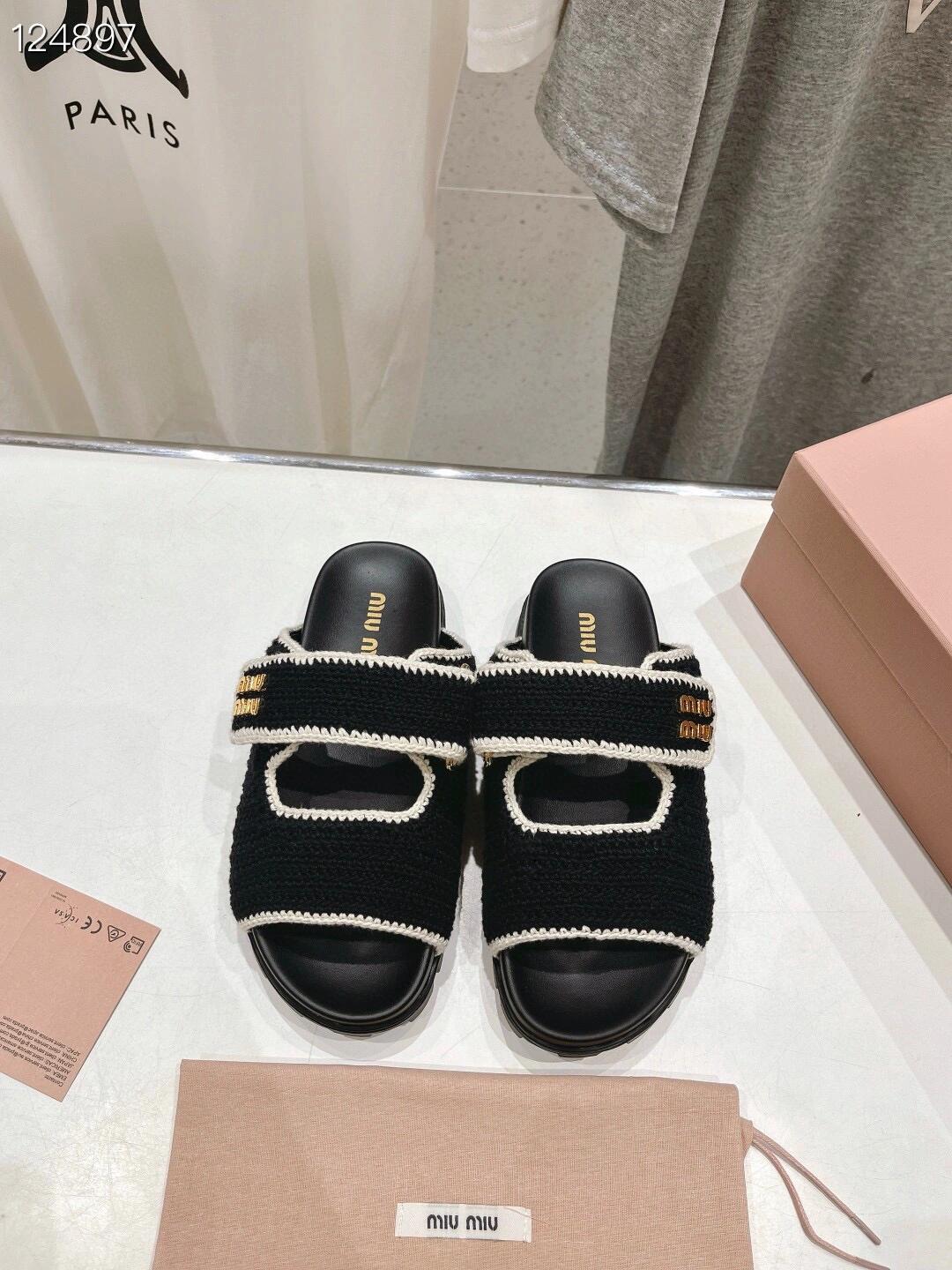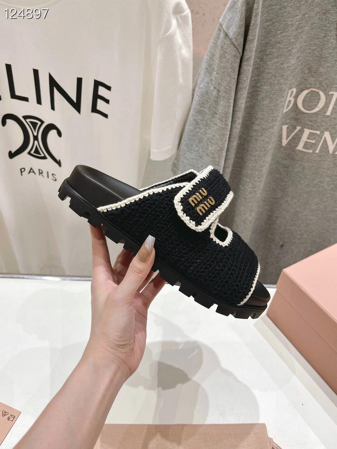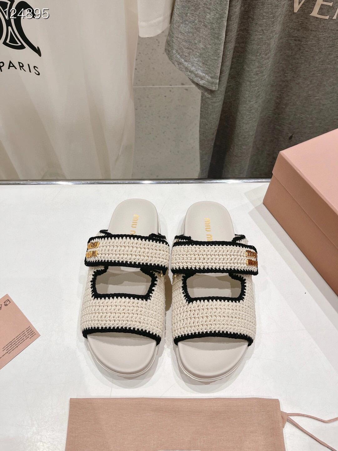 MiuMi*缪缪两带魔术贴!!编织 厚底 平底 拖鞋