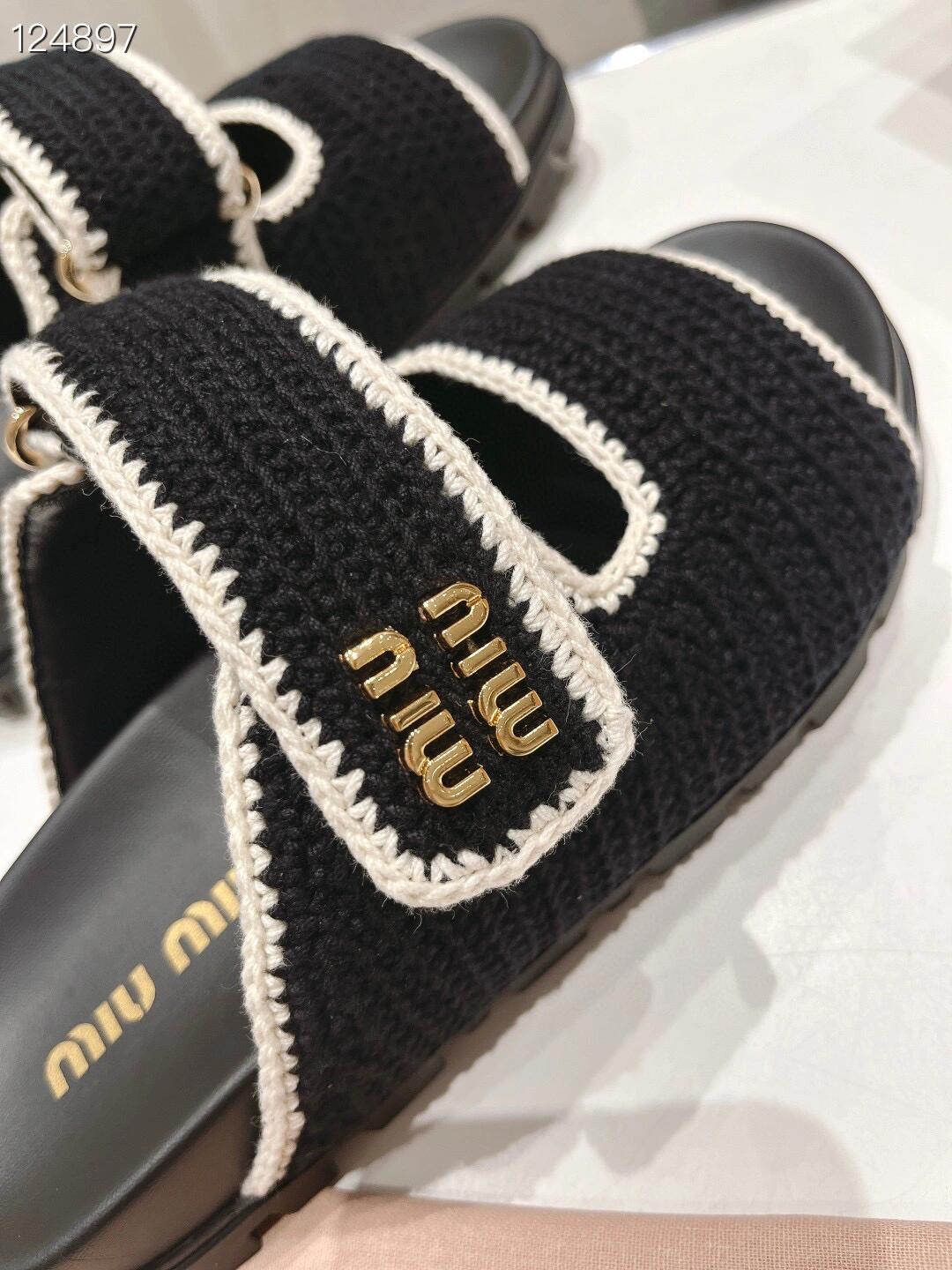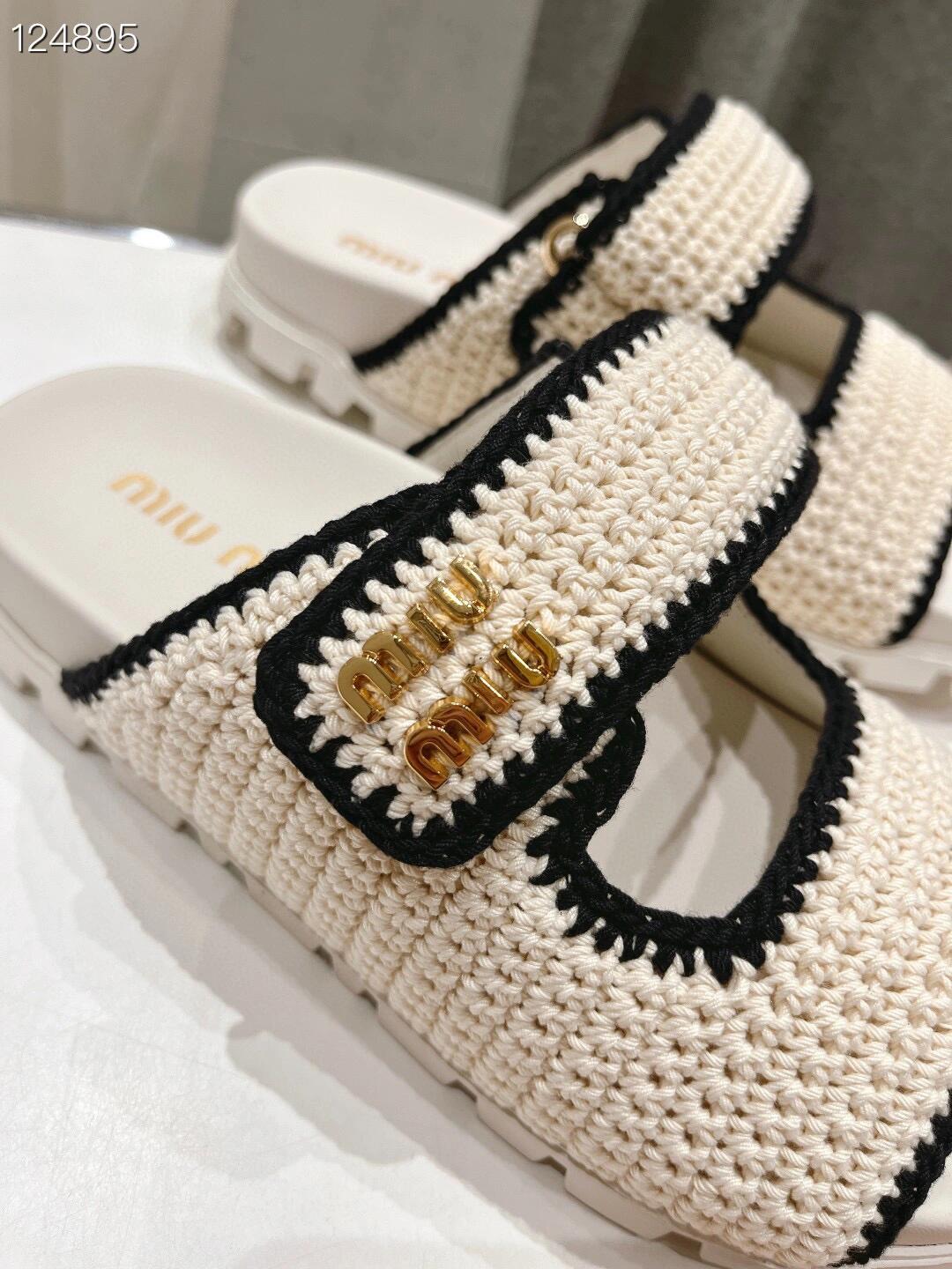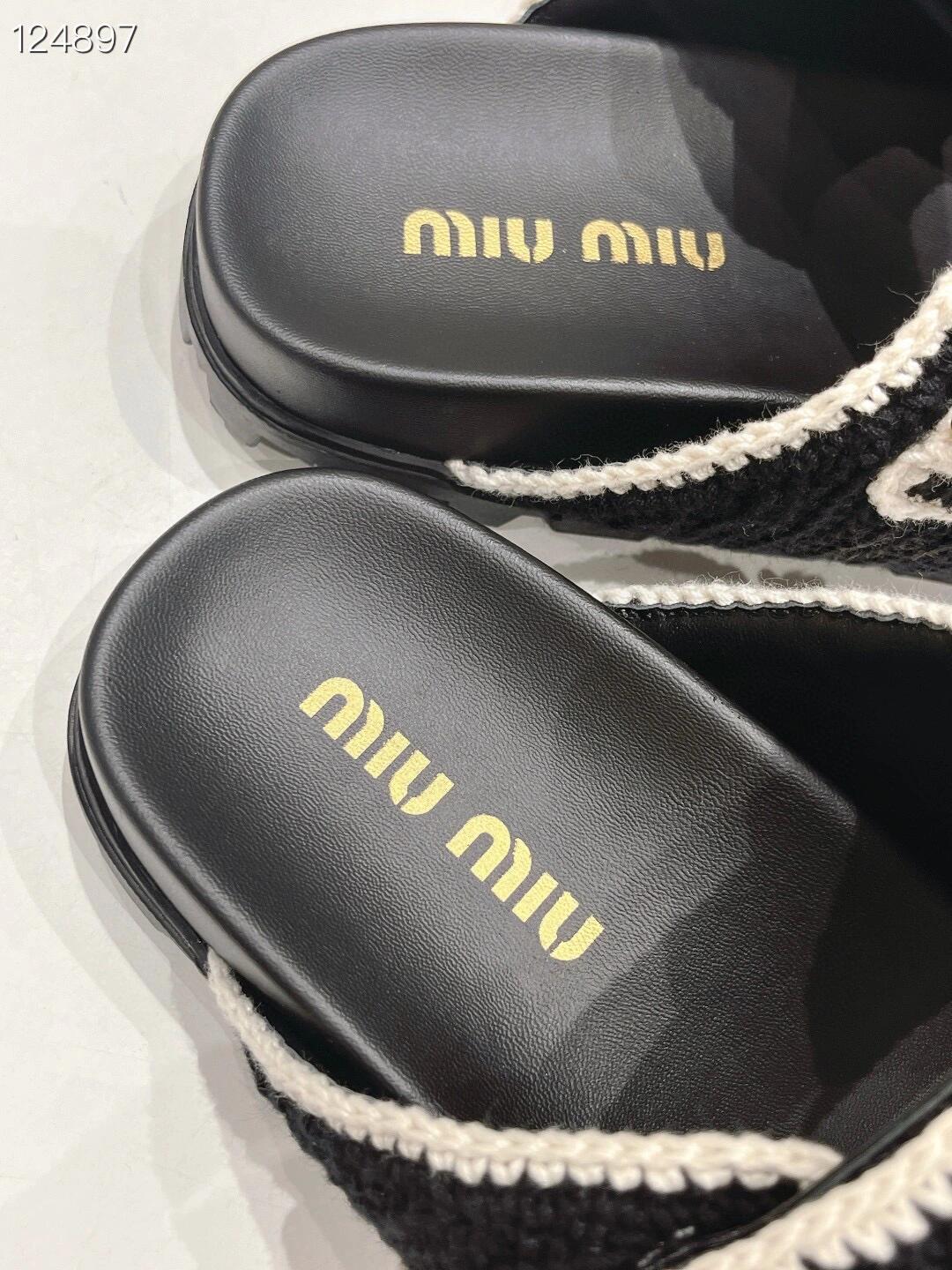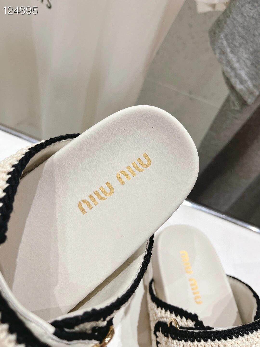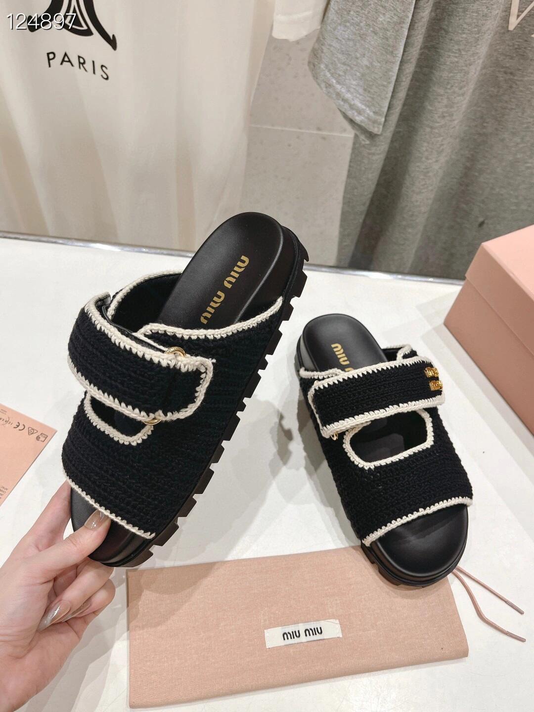 MiuMi*缪缪两带魔术贴!!编织 厚底 平底 拖鞋