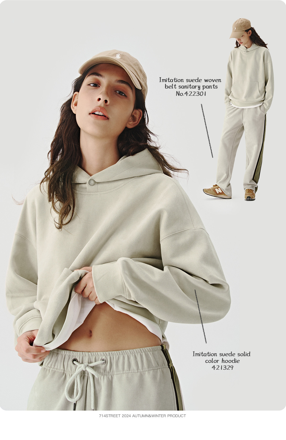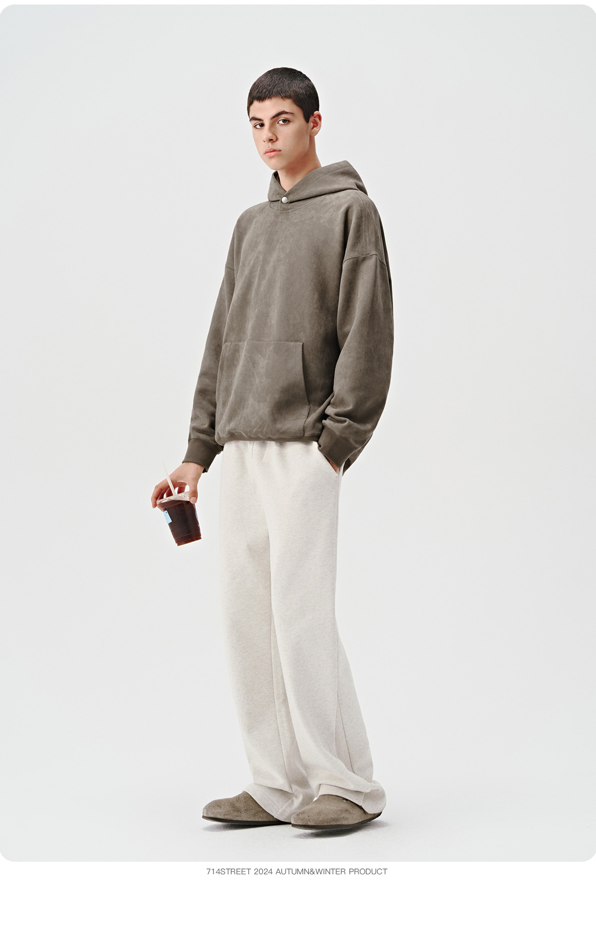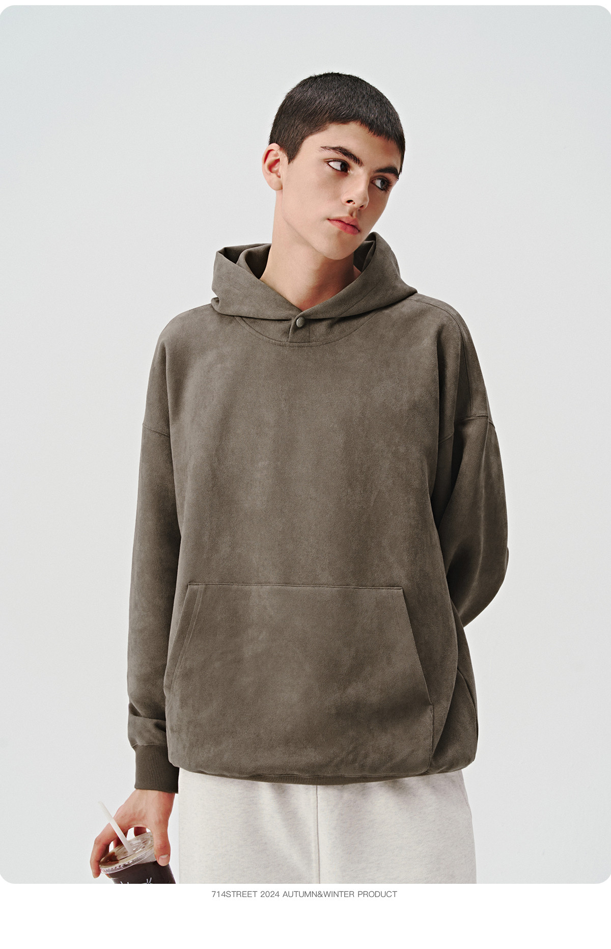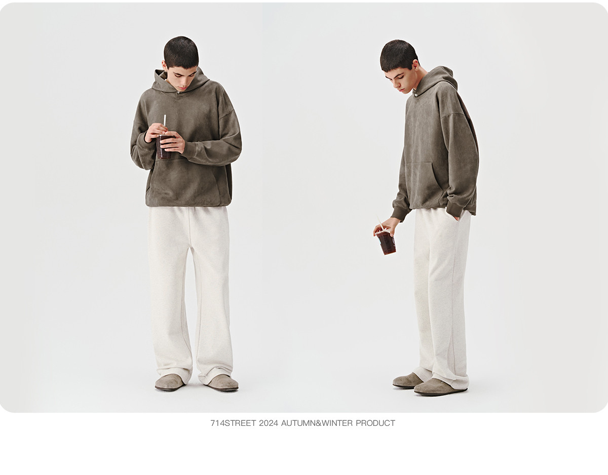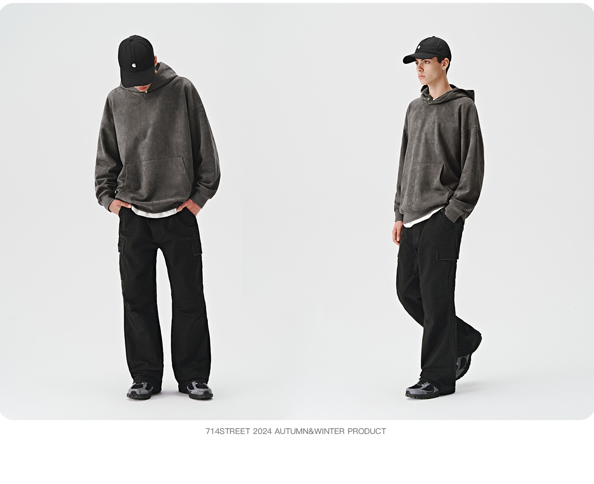 714street麂皮美式复古薄款连帽卫衣男女款帽衫2024秋季新款上衣