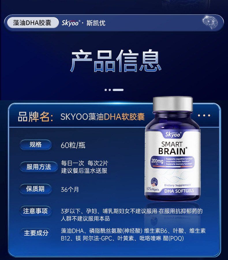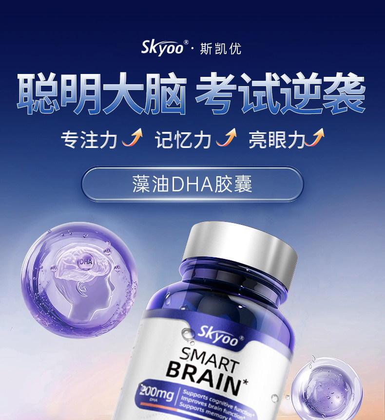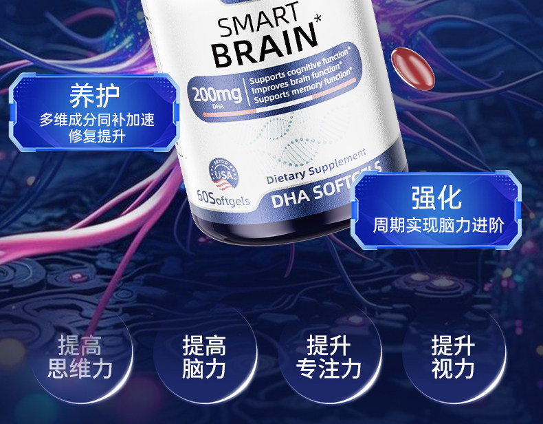 DHA补脑增强学生儿童青少年记忆力进口神经酸藻油鱼油官方旗舰店
