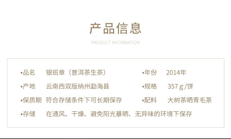 陈升号 2014年银班章357g(生茶)