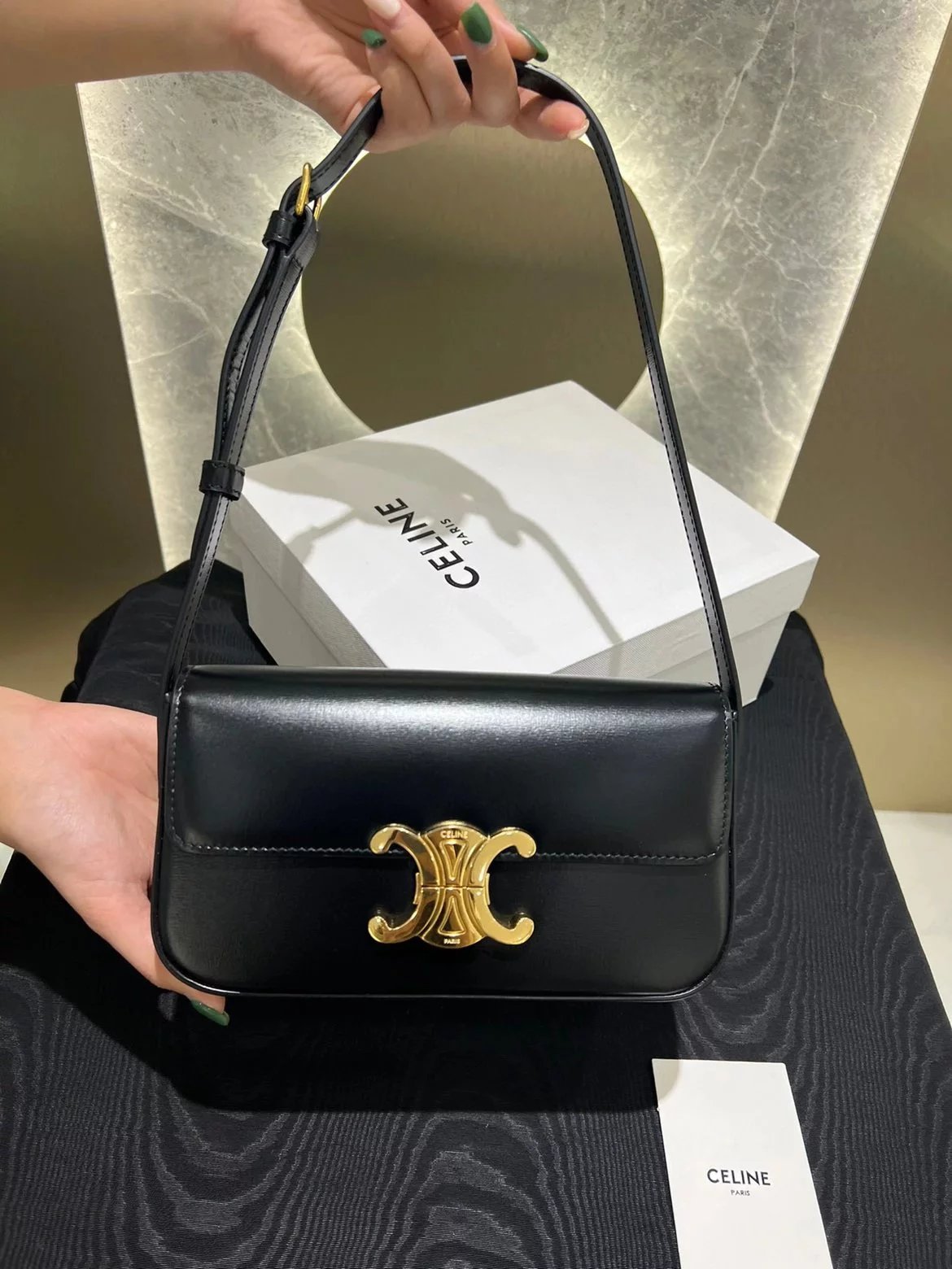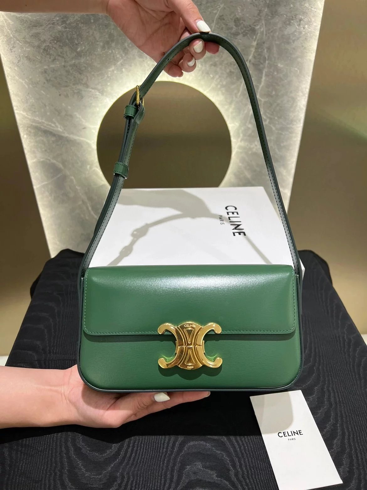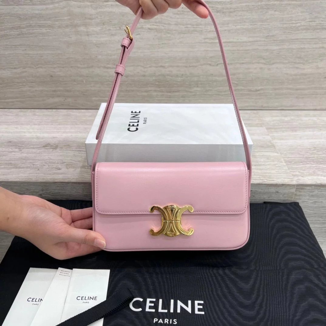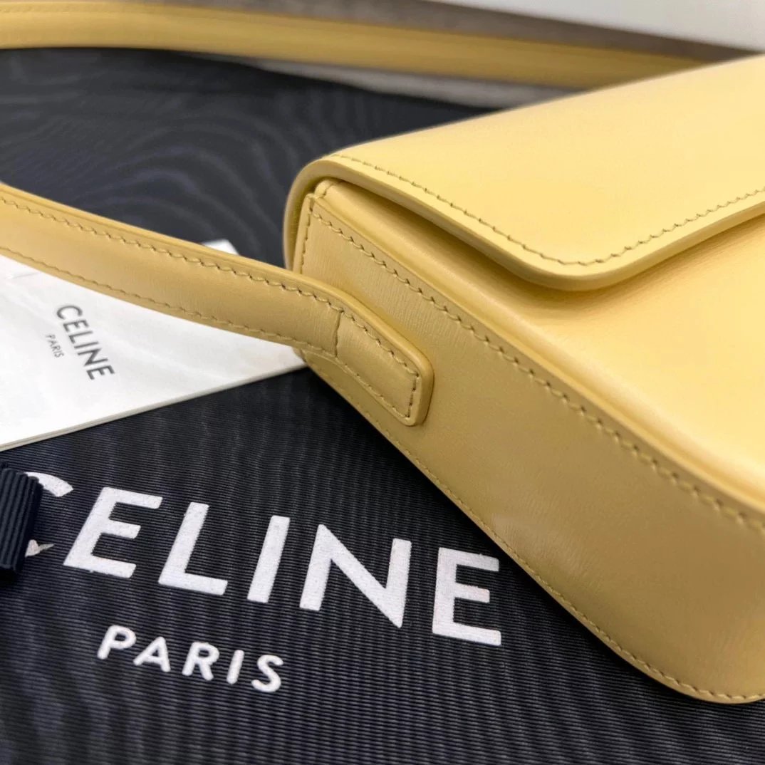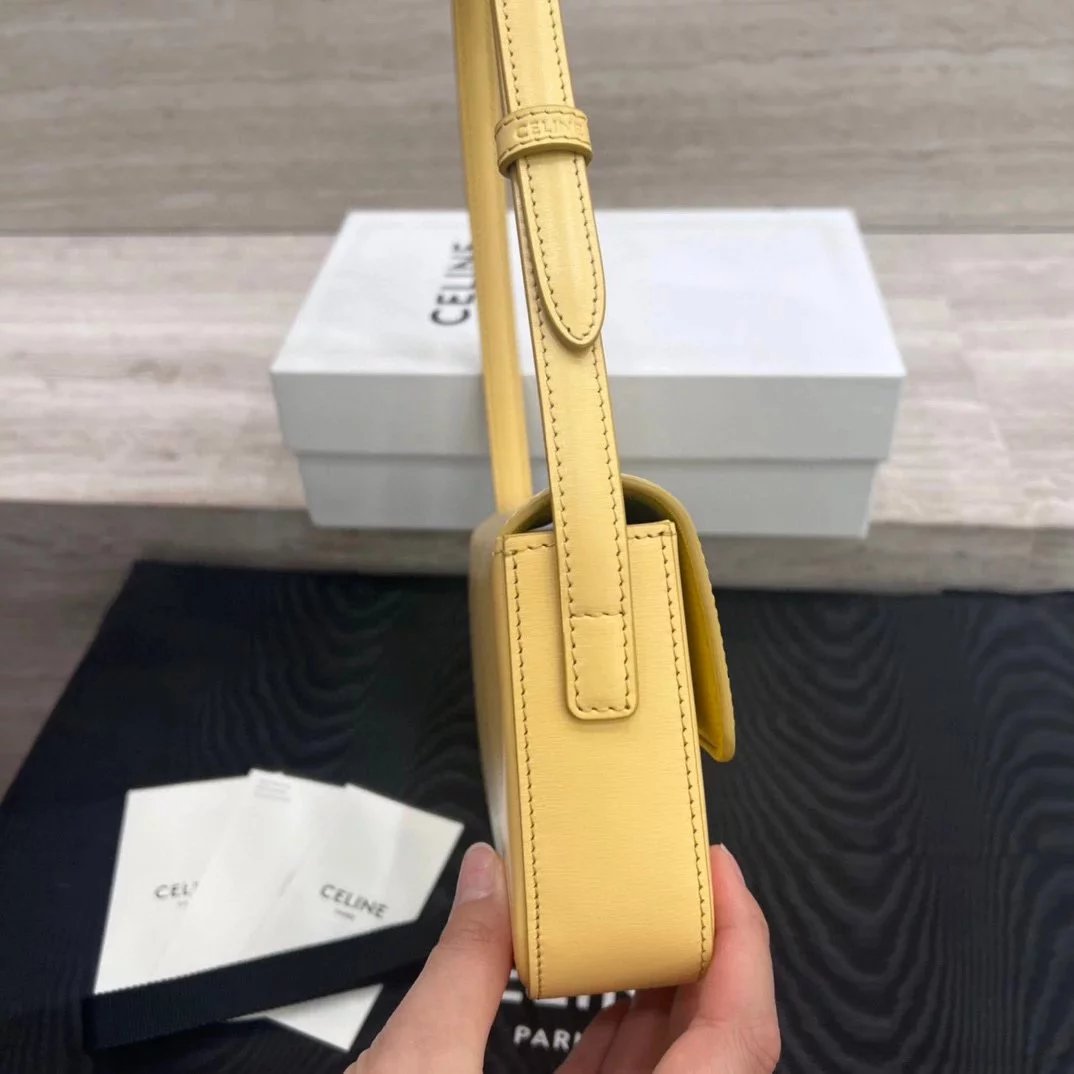 赛琳|凯旋门TRIOMPHE皮肩带腋下包|DZ 凯旋门TRIOMPHE原厂牛皮+原厂牛皮革肩背包 +原厂羊皮革衬里肩背 TRIOMPHE 金属质感锁扣内侧扁平口袋 可调节皮革肩带长8英. 尺码:20 X 10 X 4cm