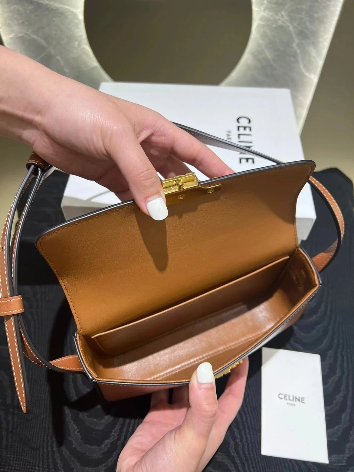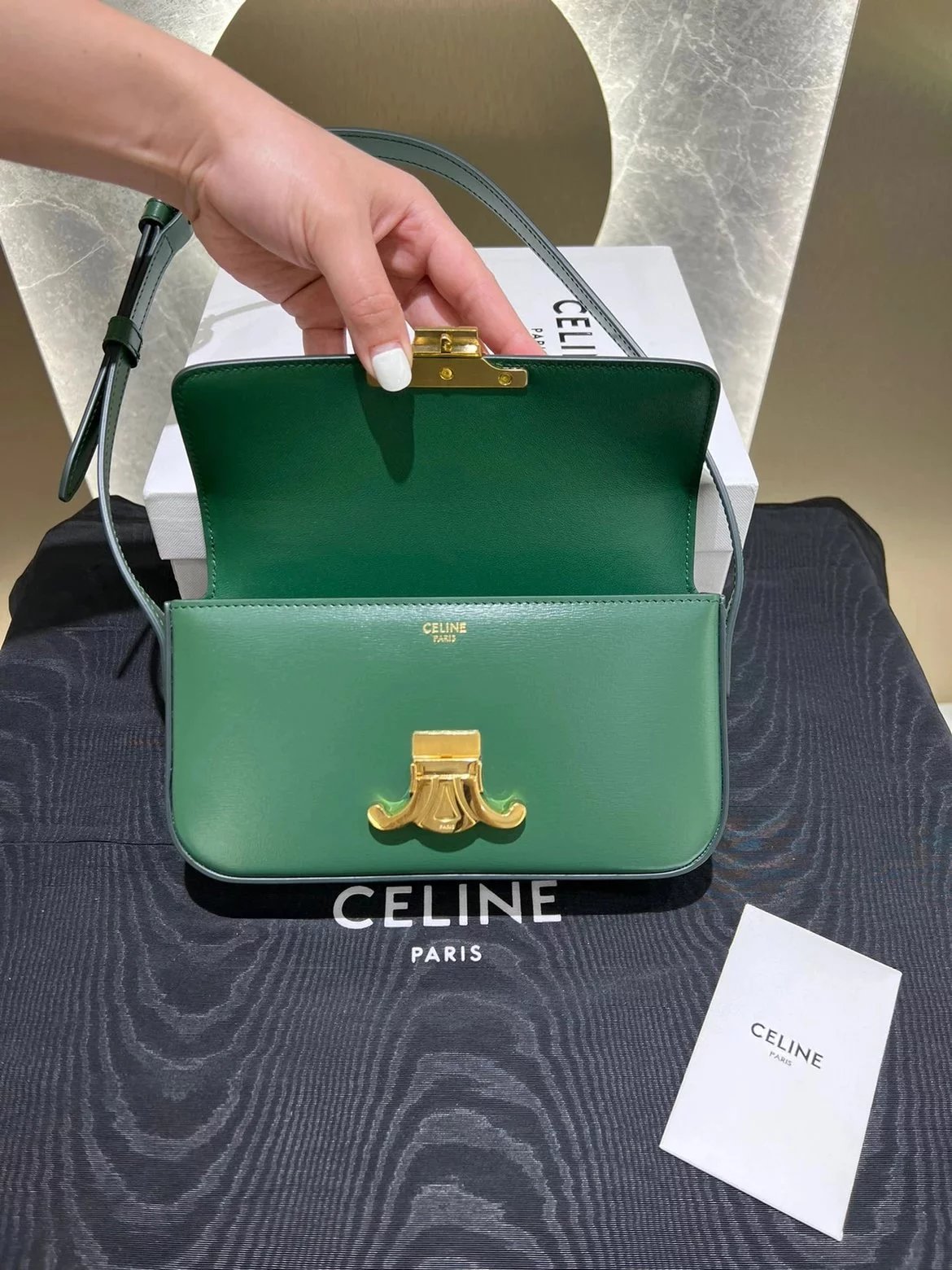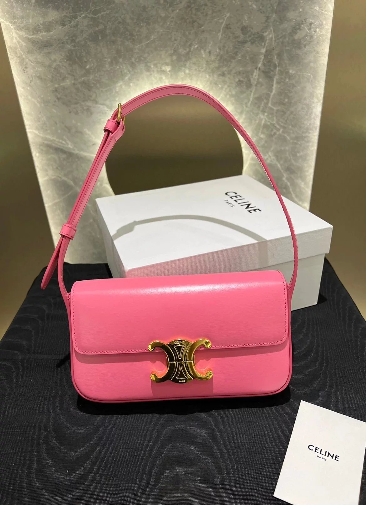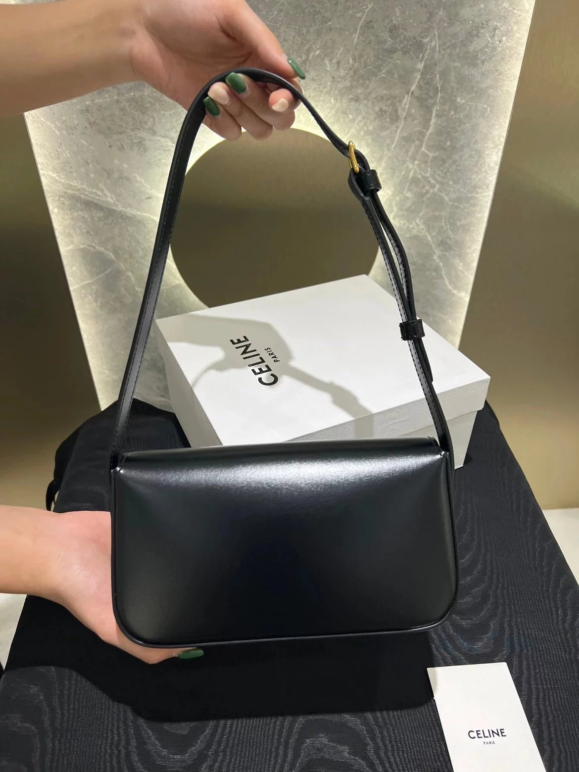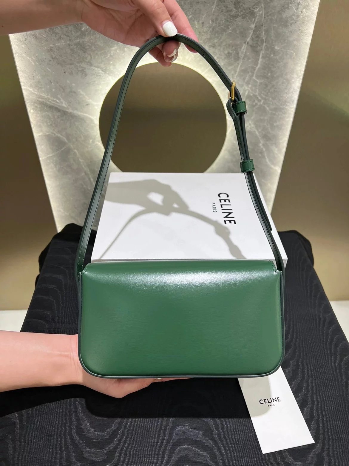 赛琳|凯旋门TRIOMPHE皮肩带腋下包|DZ 凯旋门TRIOMPHE原厂牛皮+原厂牛皮革肩背包 +原厂羊皮革衬里肩背 TRIOMPHE 金属质感锁扣内侧扁平口袋 可调节皮革肩带长8英. 尺码:20 X 10 X 4cm