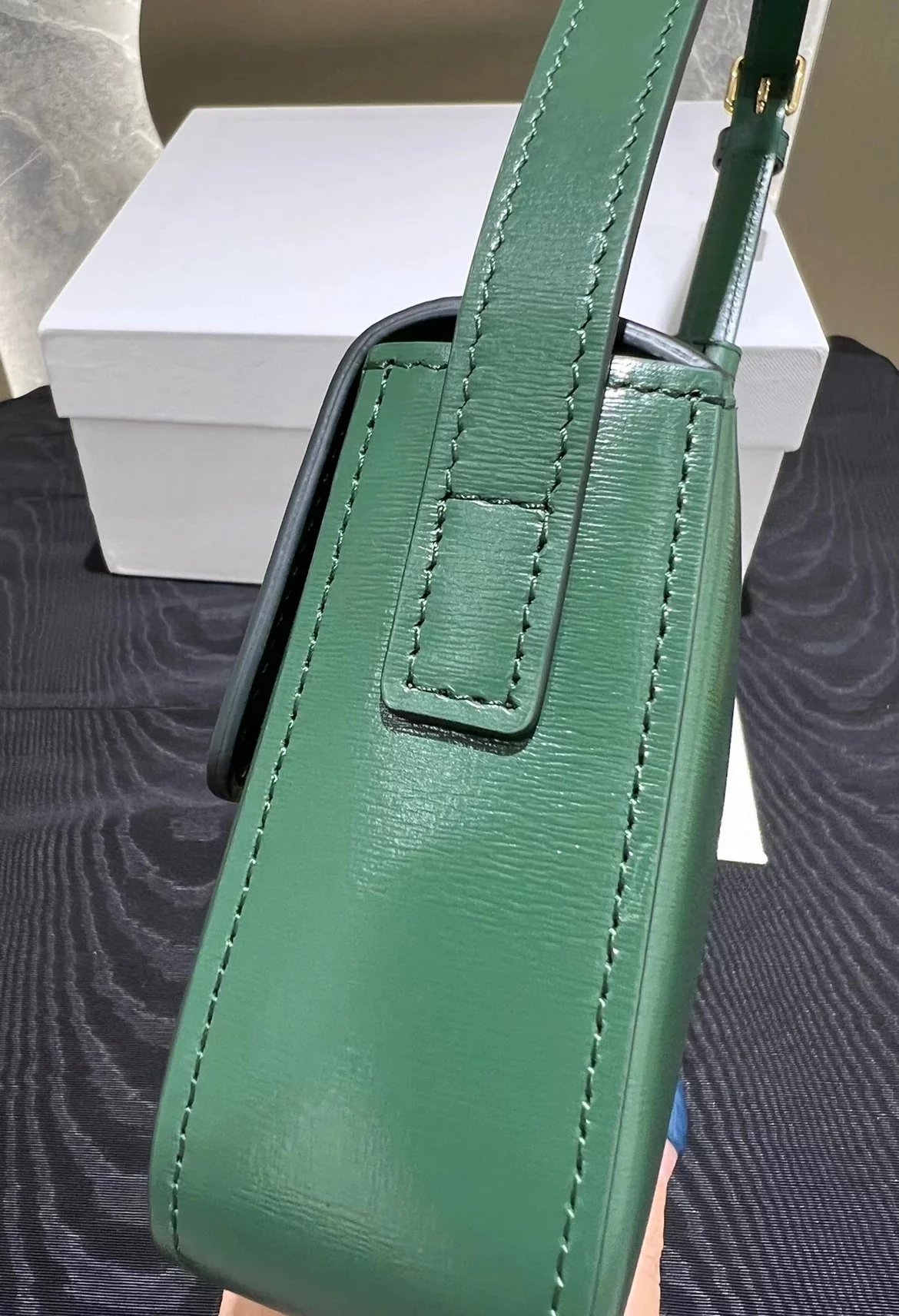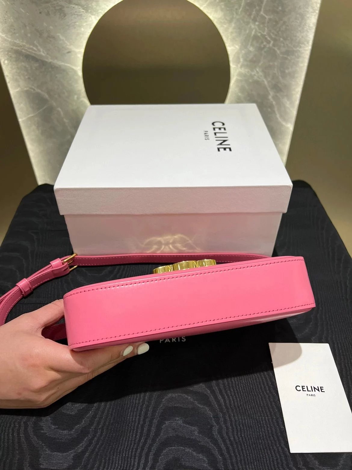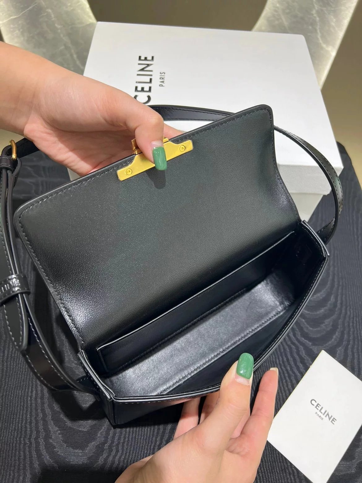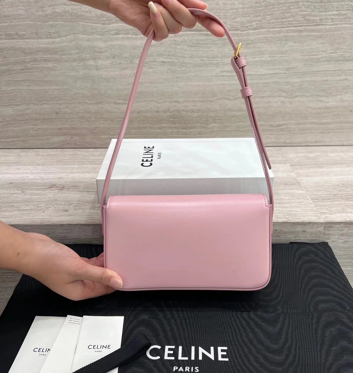 赛琳|凯旋门TRIOMPHE皮肩带腋下包|DZ 凯旋门TRIOMPHE原厂牛皮+原厂牛皮革肩背包 +原厂羊皮革衬里肩背 TRIOMPHE 金属质感锁扣内侧扁平口袋 可调节皮革肩带长8英. 尺码:20 X 10 X 4cm