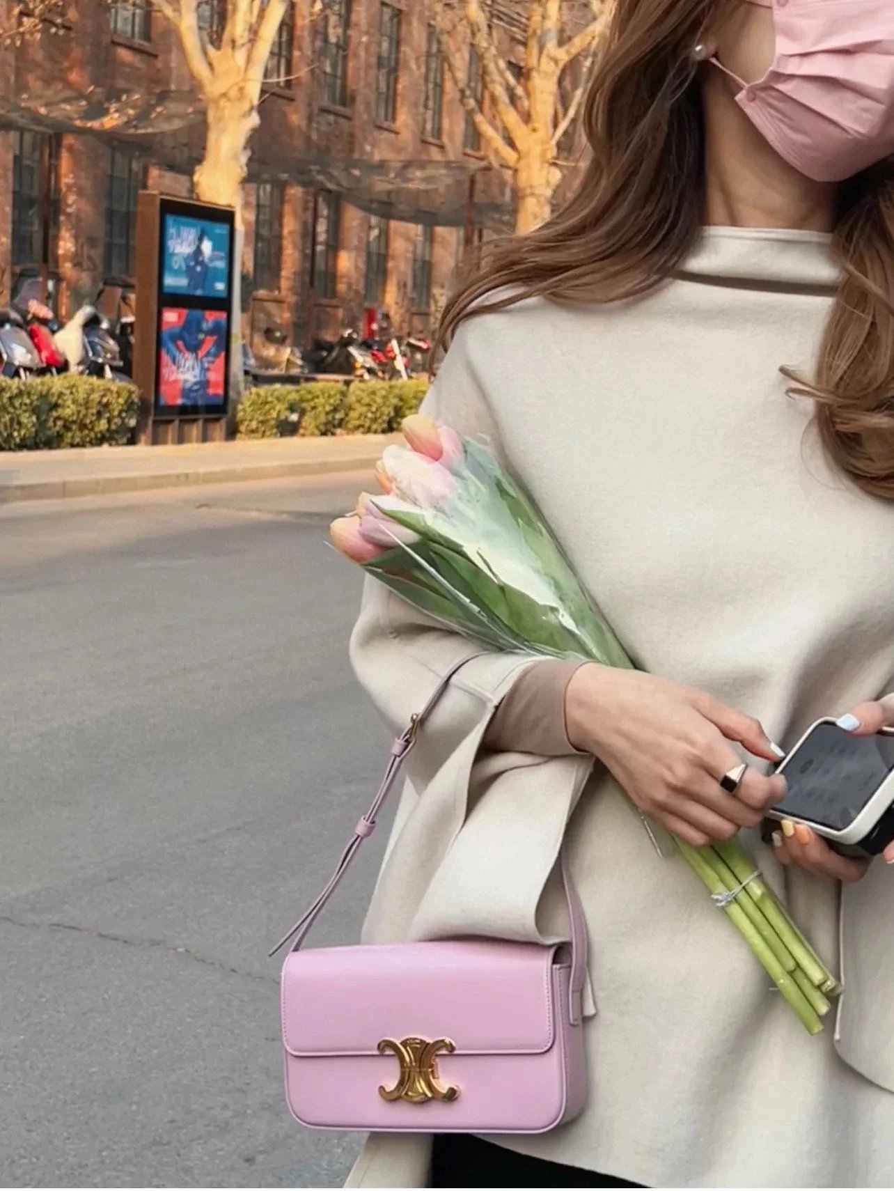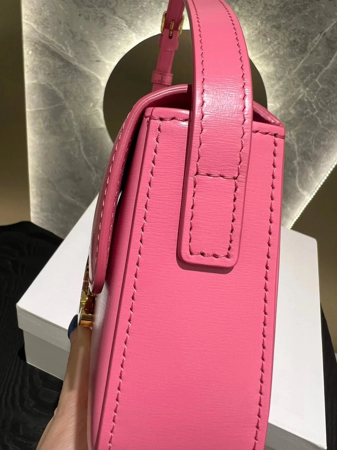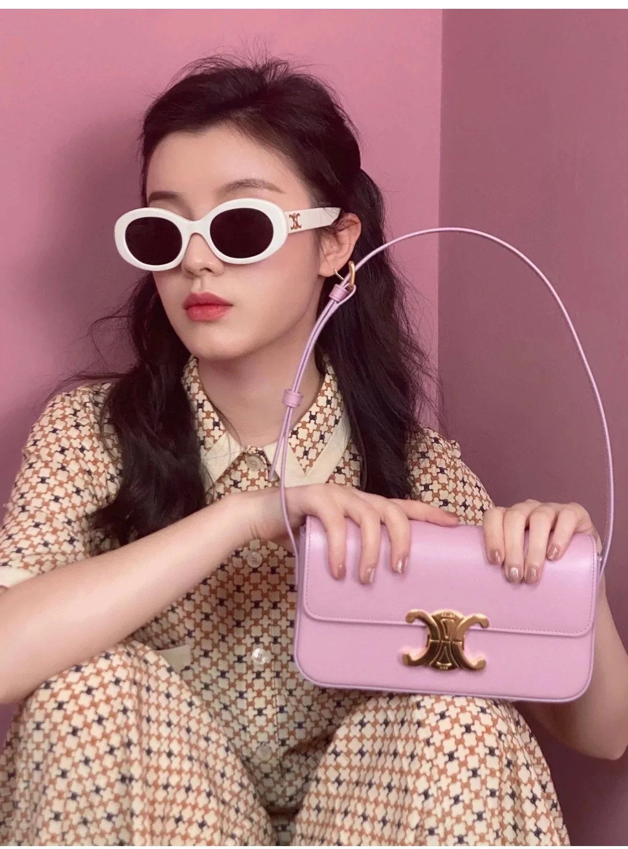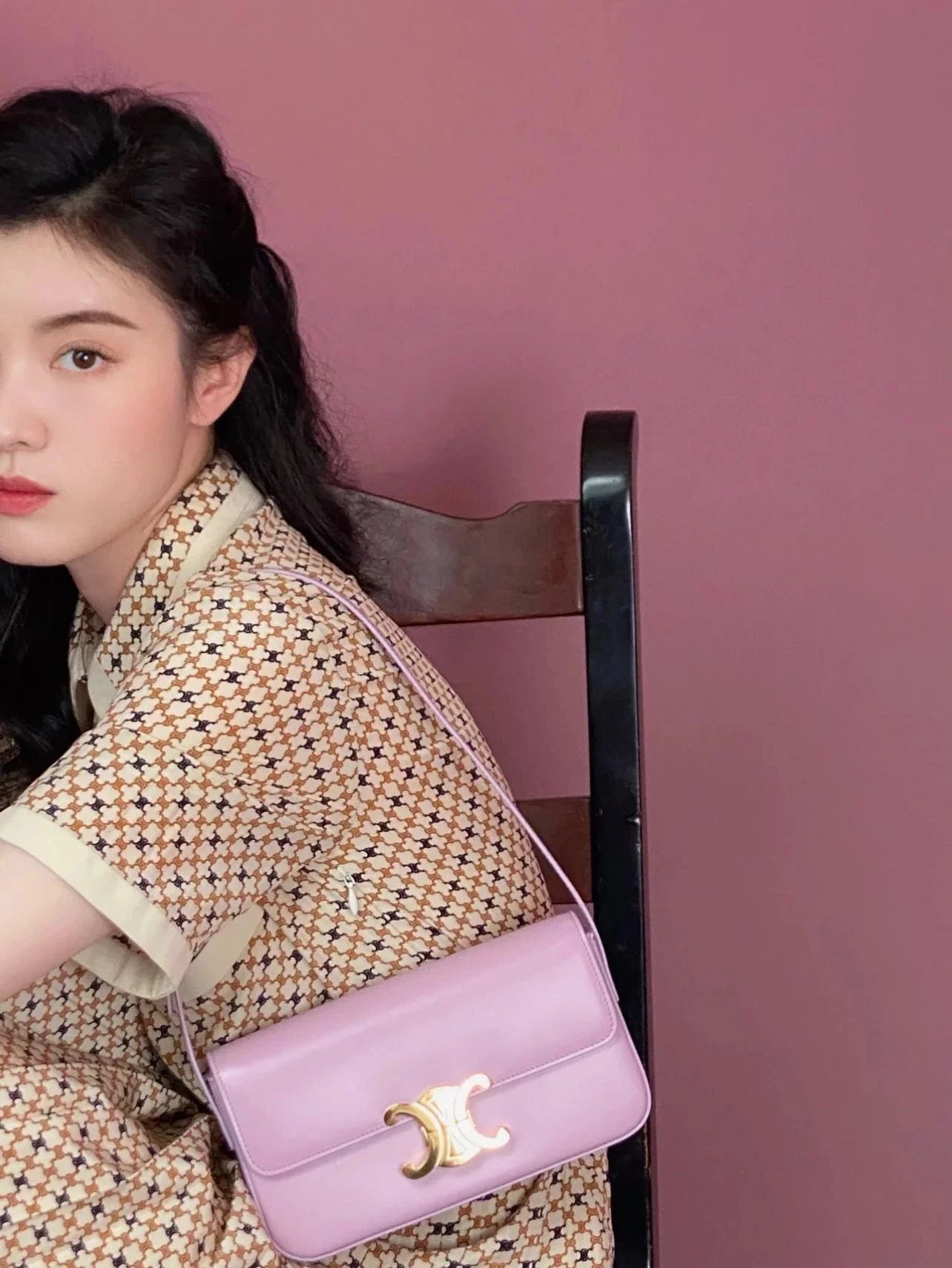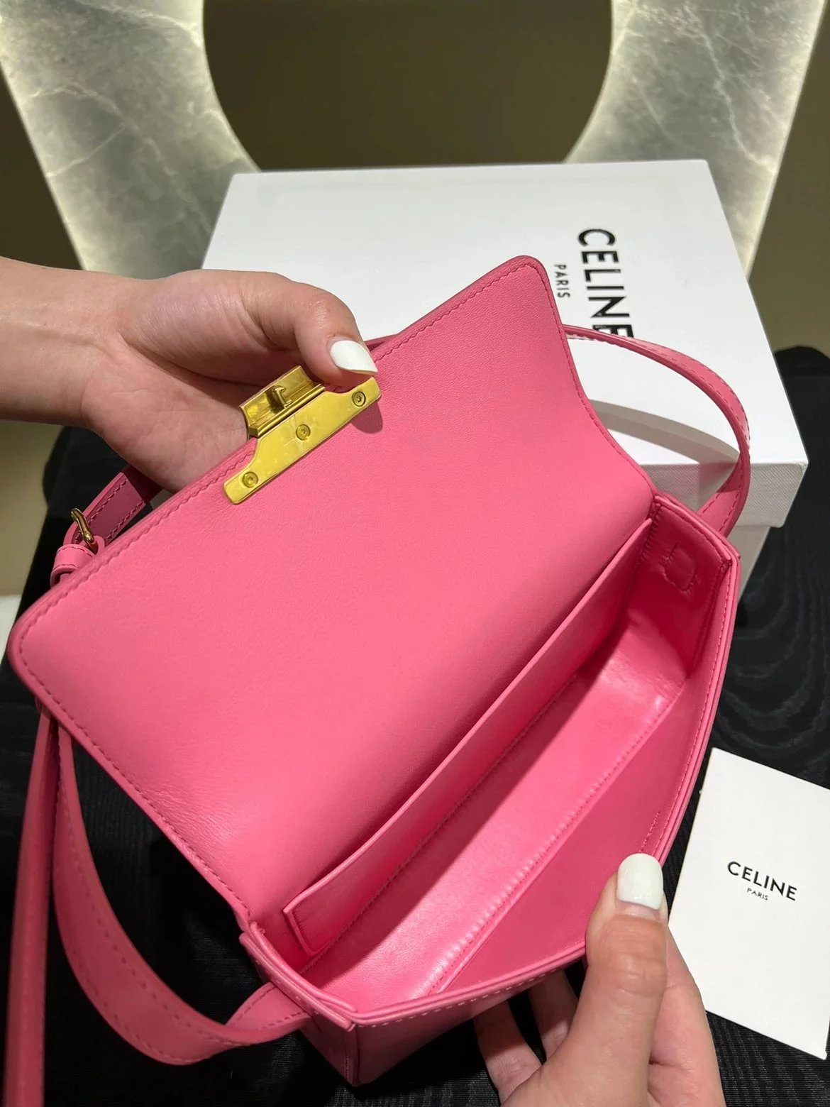 赛琳|凯旋门TRIOMPHE皮肩带腋下包|DZ 凯旋门TRIOMPHE原厂牛皮+原厂牛皮革肩背包 +原厂羊皮革衬里肩背 TRIOMPHE 金属质感锁扣内侧扁平口袋 可调节皮革肩带长8英. 尺码:20 X 10 X 4cm