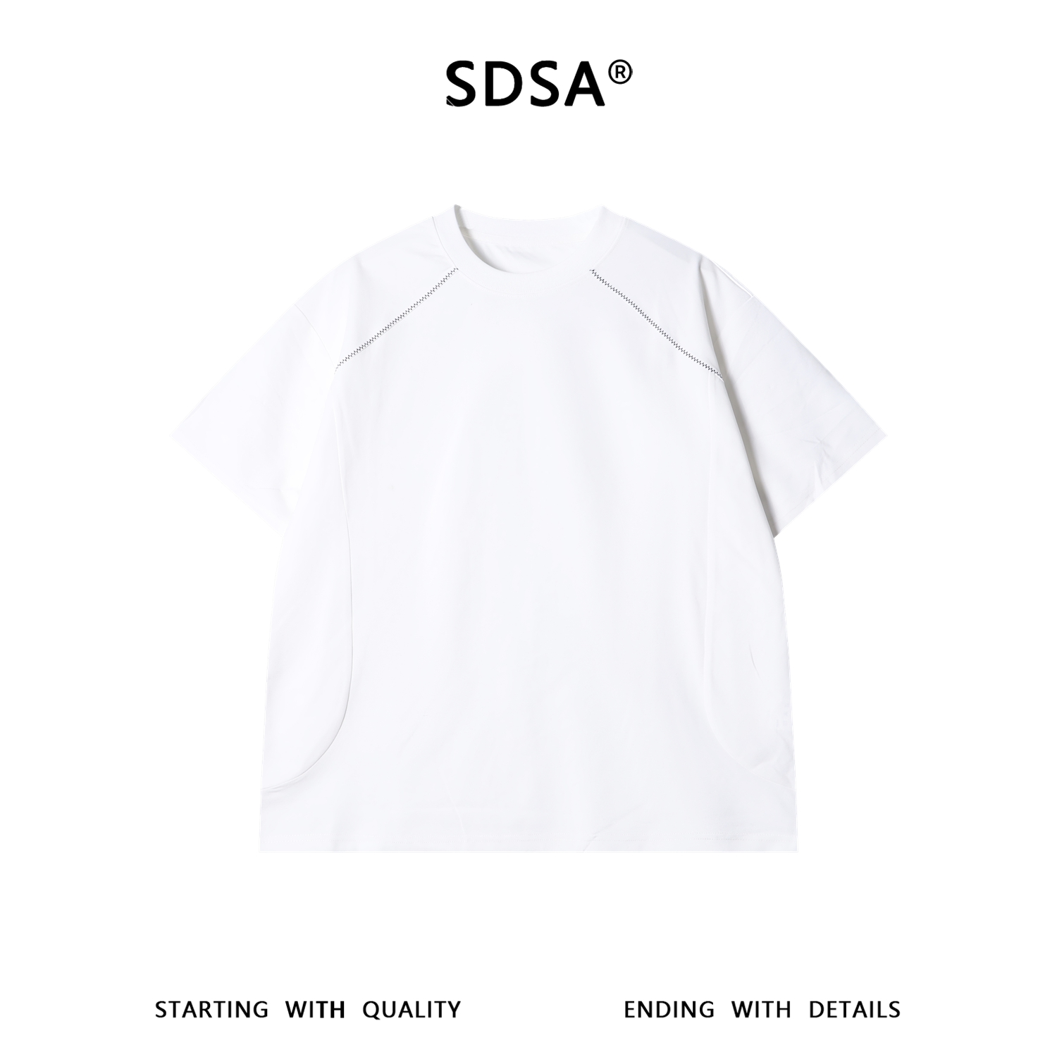 SDSA男装2026新款高贵轻奢日系简约明线撞色圆领短袖T恤百搭时尚