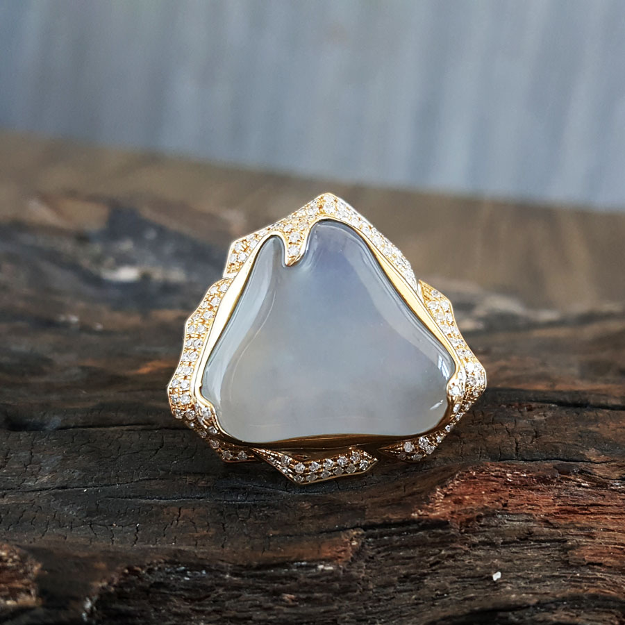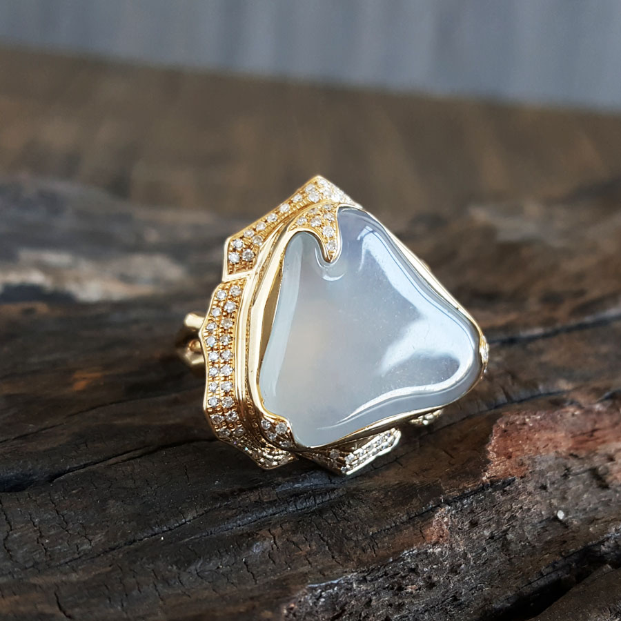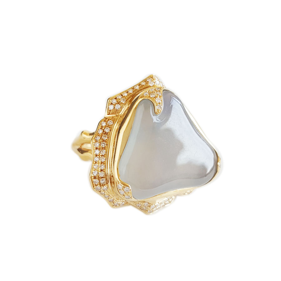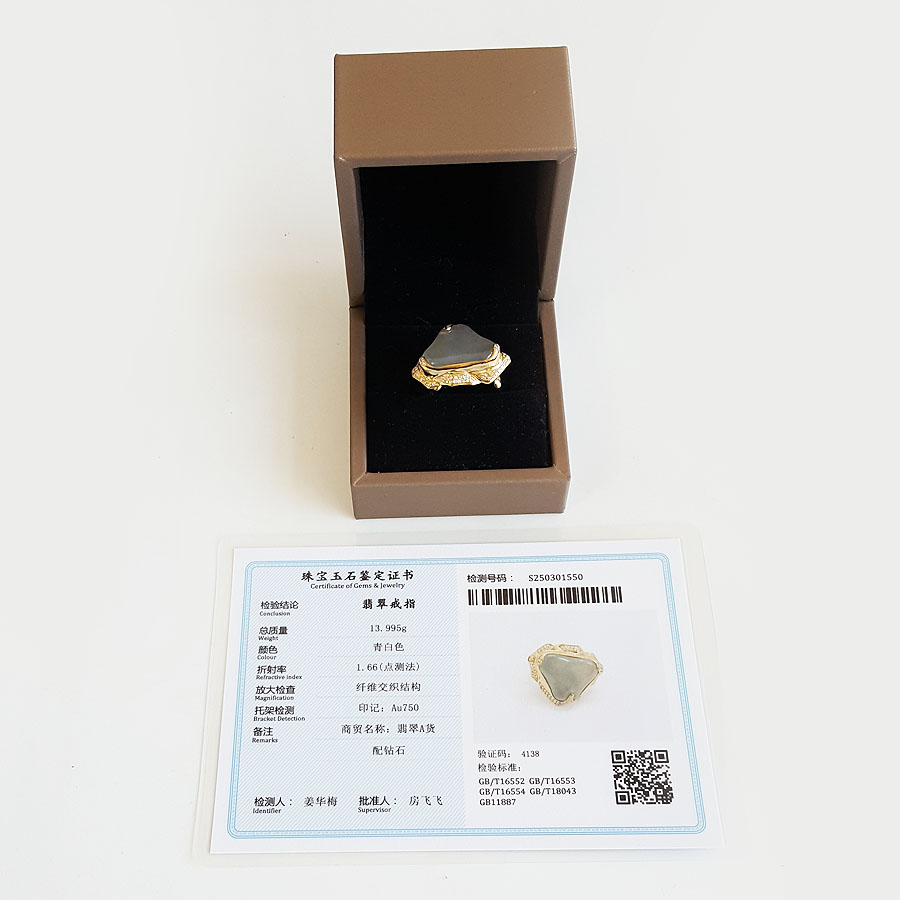 名称 | AU750收藏级黄金镶钻镶天然冰种随形翡翠戒指 |