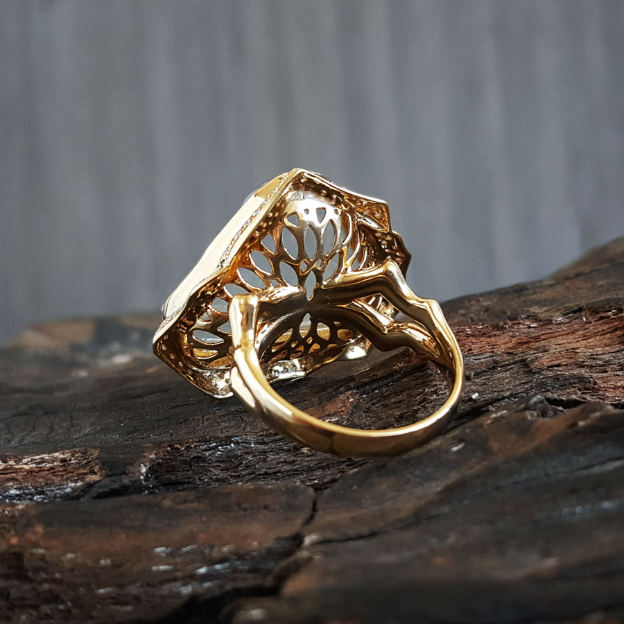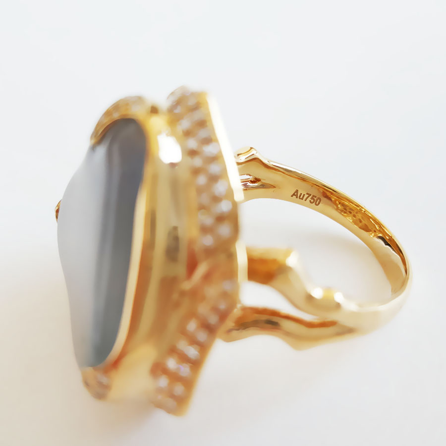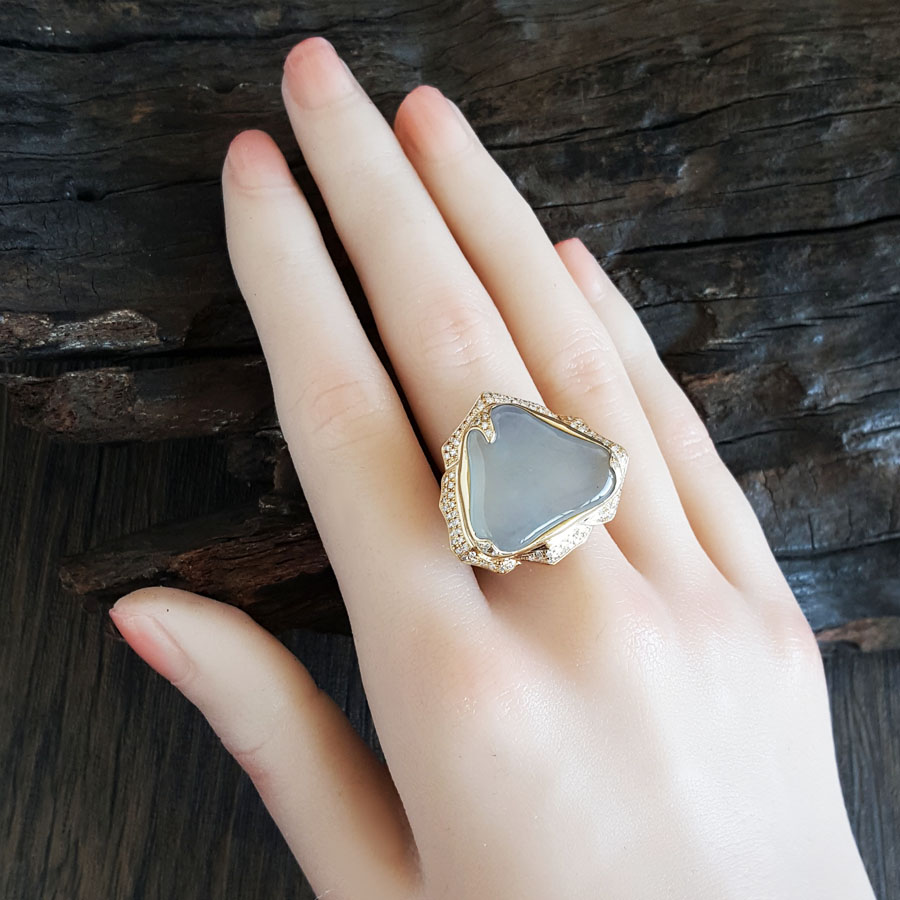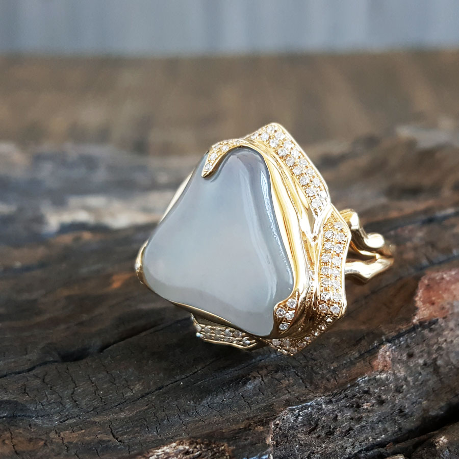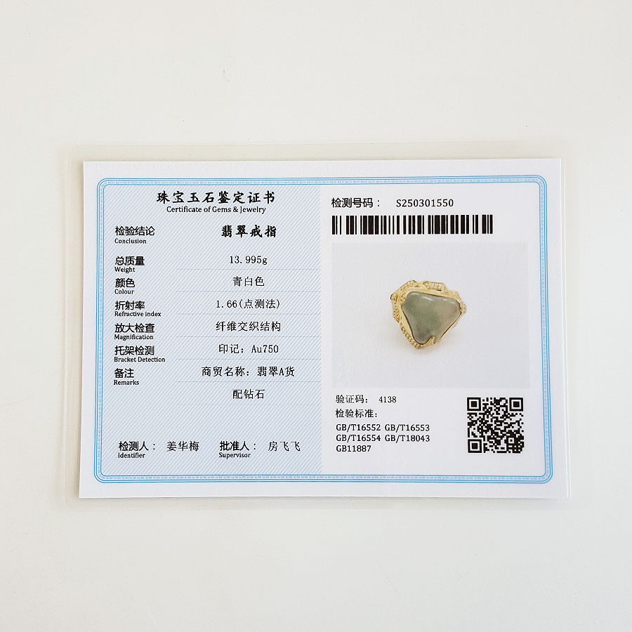 名称 | AU750收藏级黄金镶钻镶天然冰种随形翡翠戒指 |