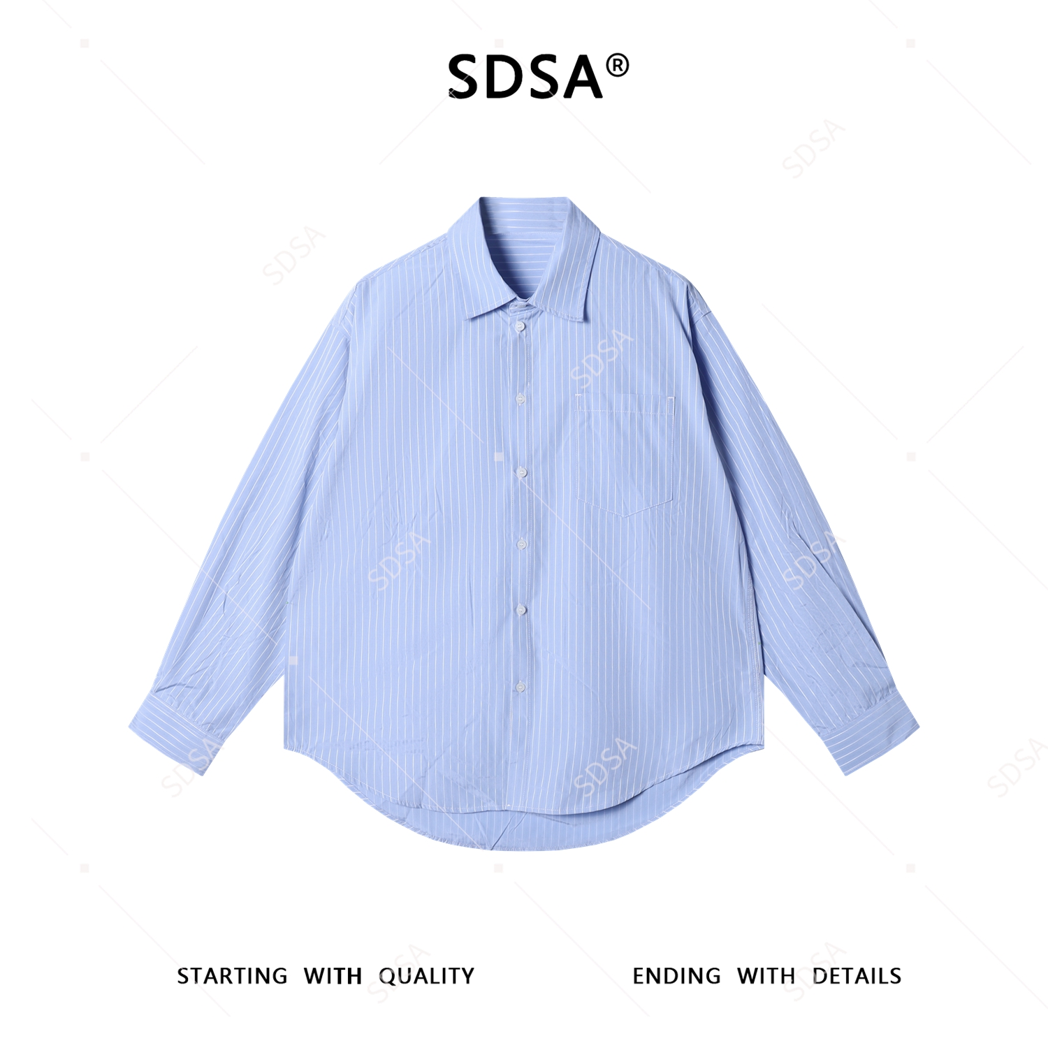 SDSA男士秋冬新款痞帅男装韩版简约宽松条纹翻领长袖时尚百搭衬衣