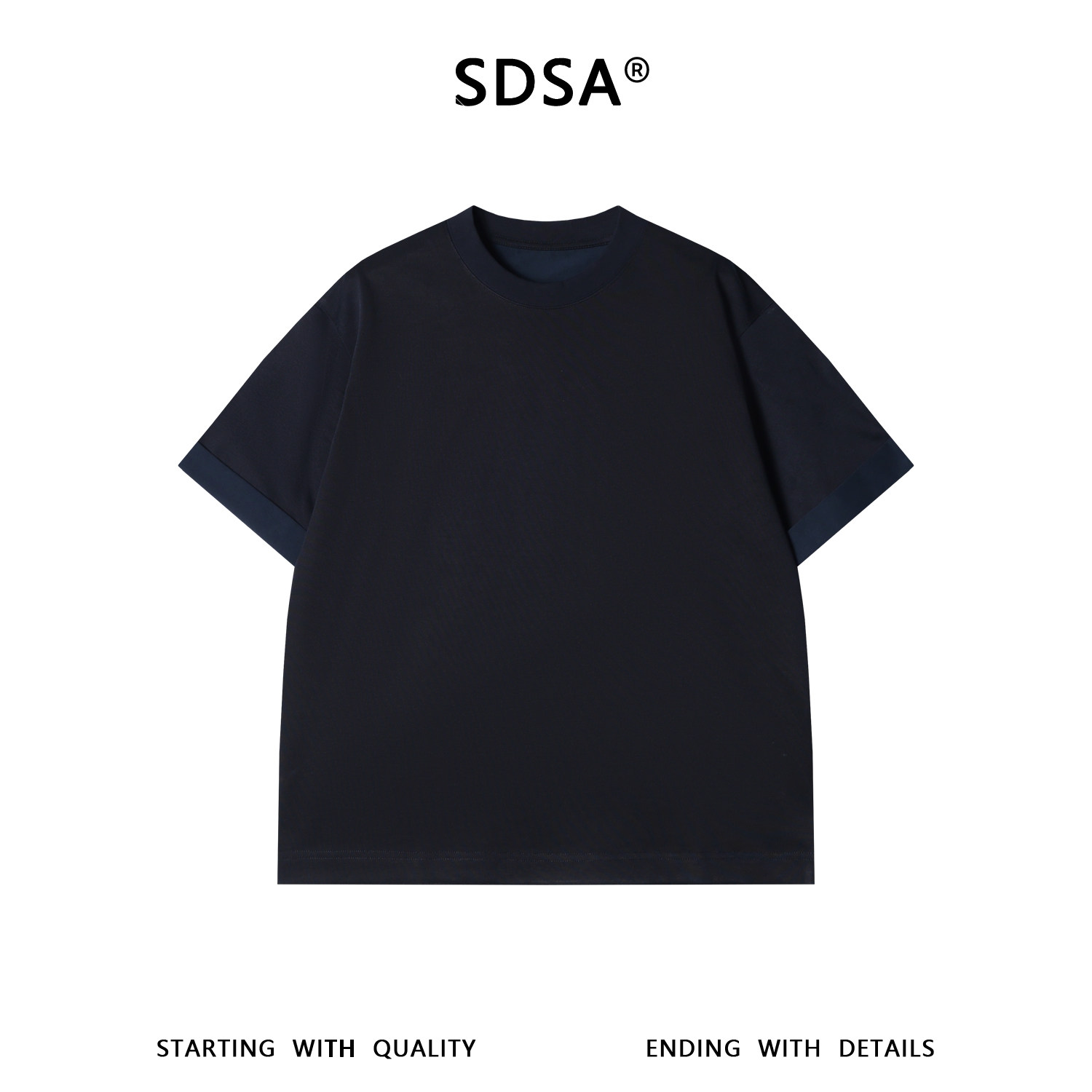SDSA男装2026新款复古基础款上衣重磅撞色设计宽松短袖休闲T恤