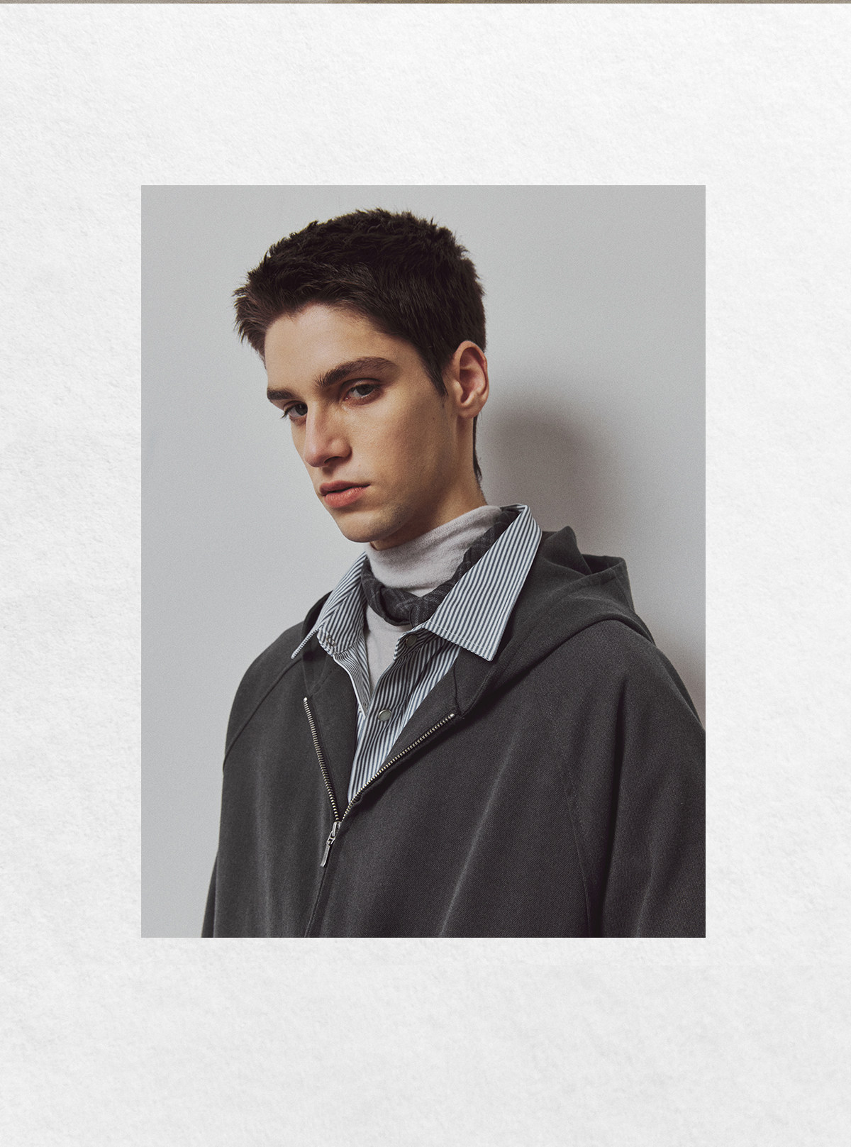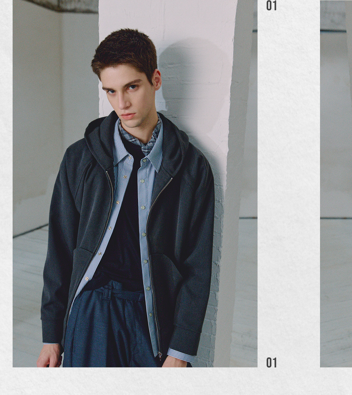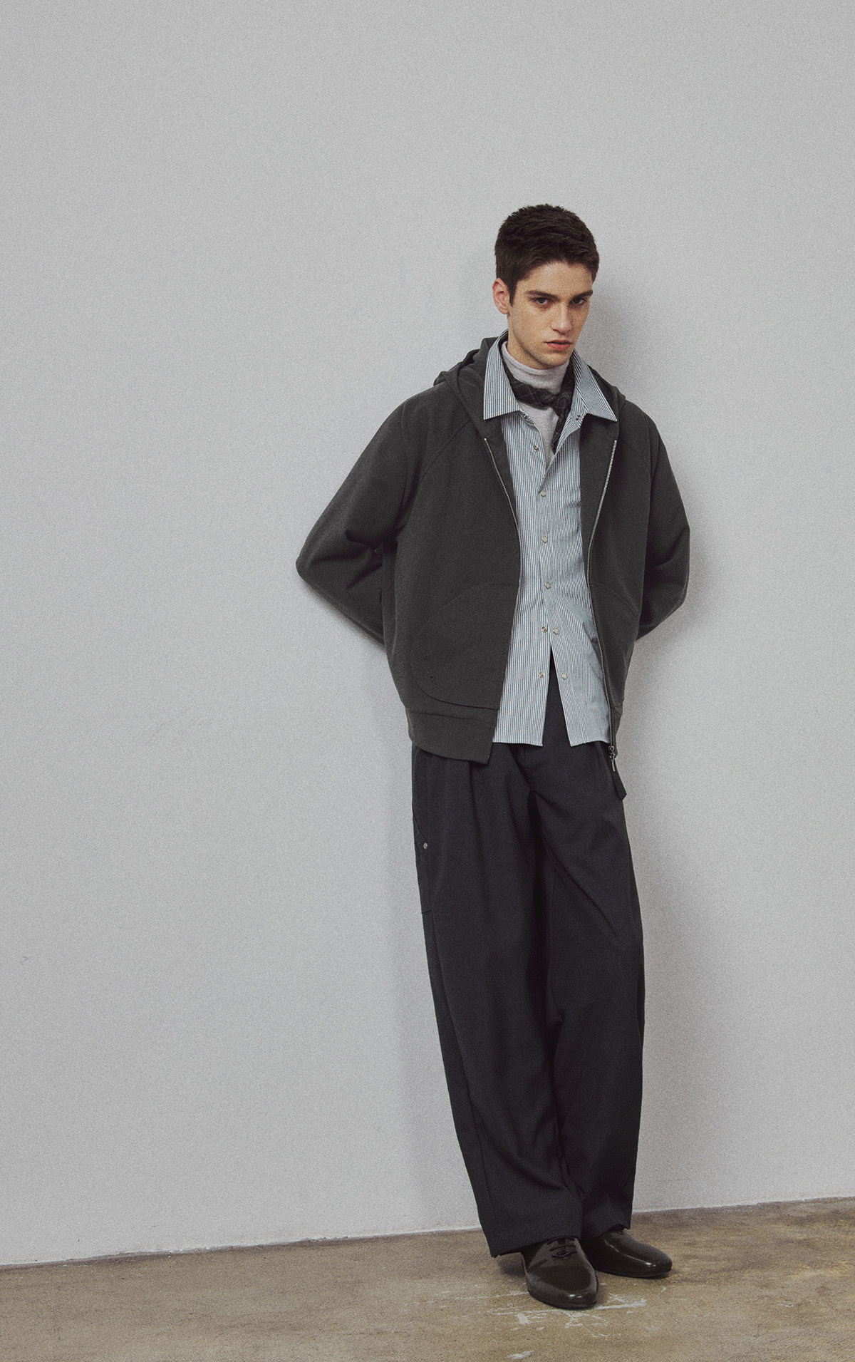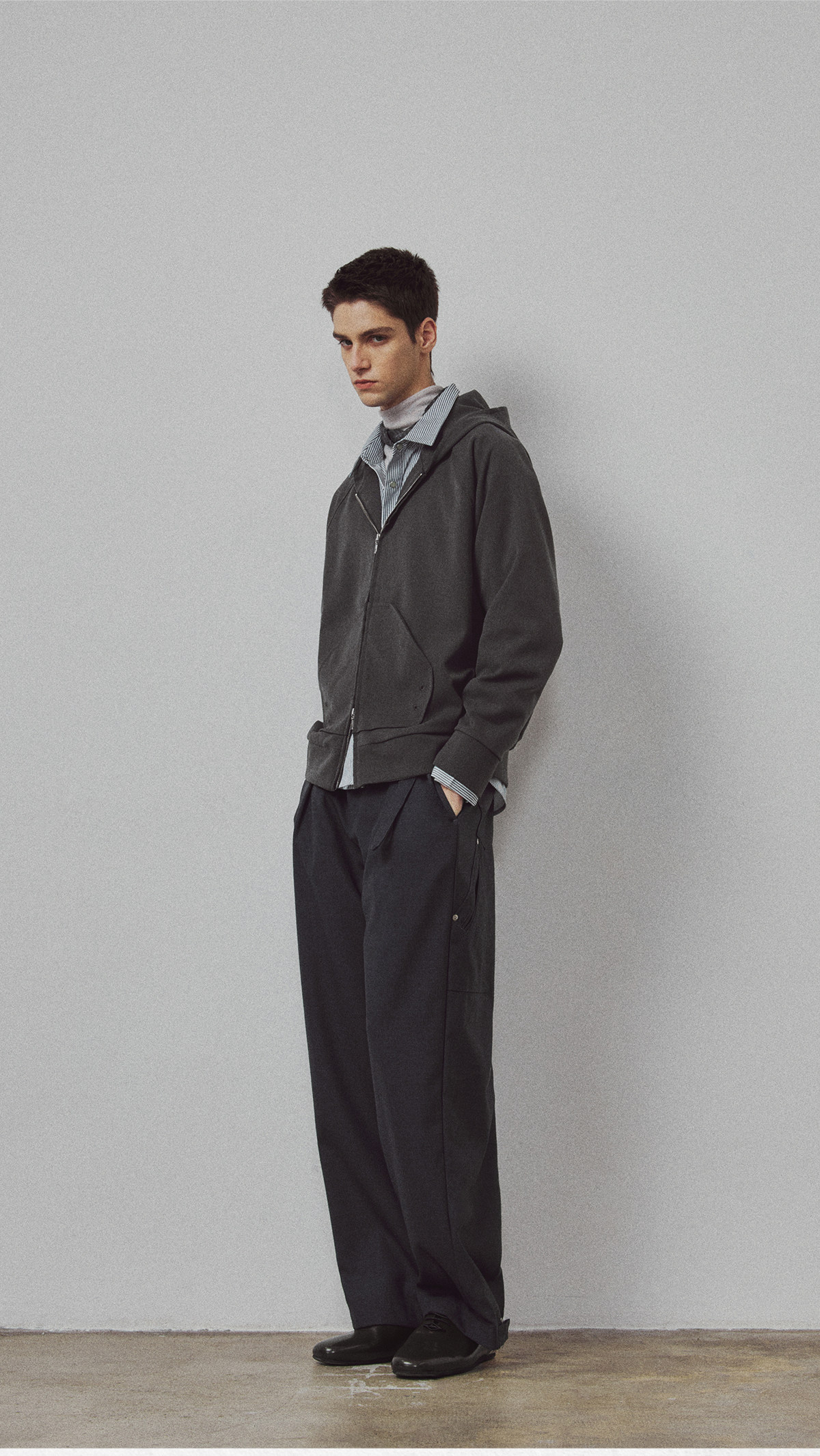 714street高端线BEHALF 弧型口袋 层次抽皱 绒面极简开衫连帽卫衣