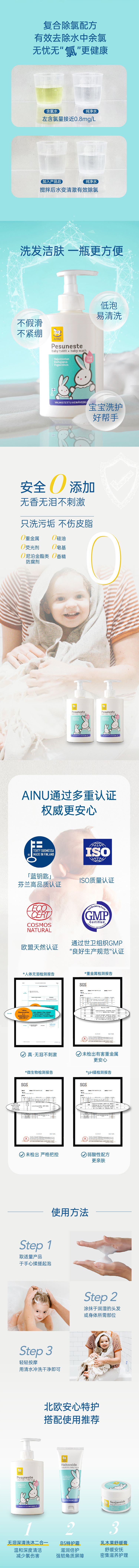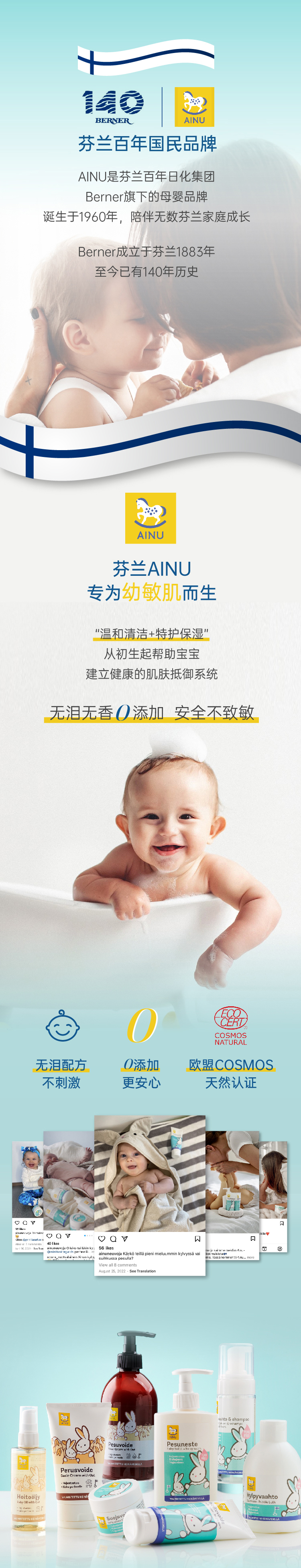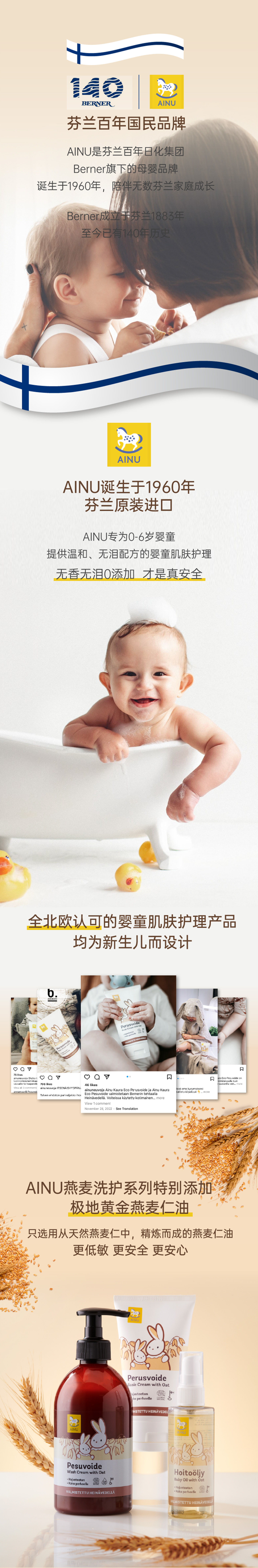 芬兰AINU国民儿童洗护 安心特护系列&燕麦特润系列 低敏温和 无香无泪配方 0有害添加 亲肤不刺激