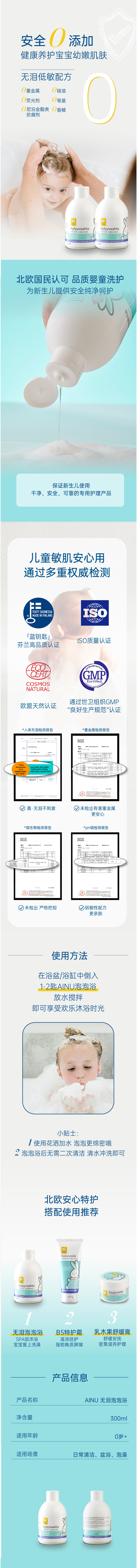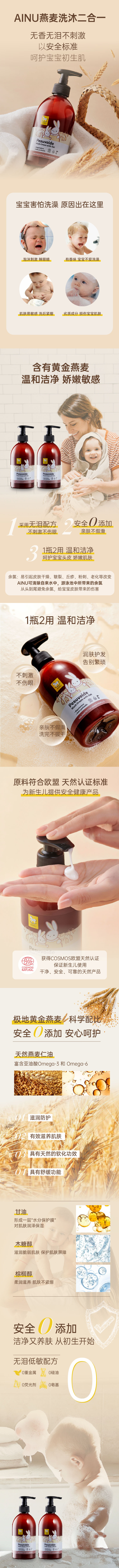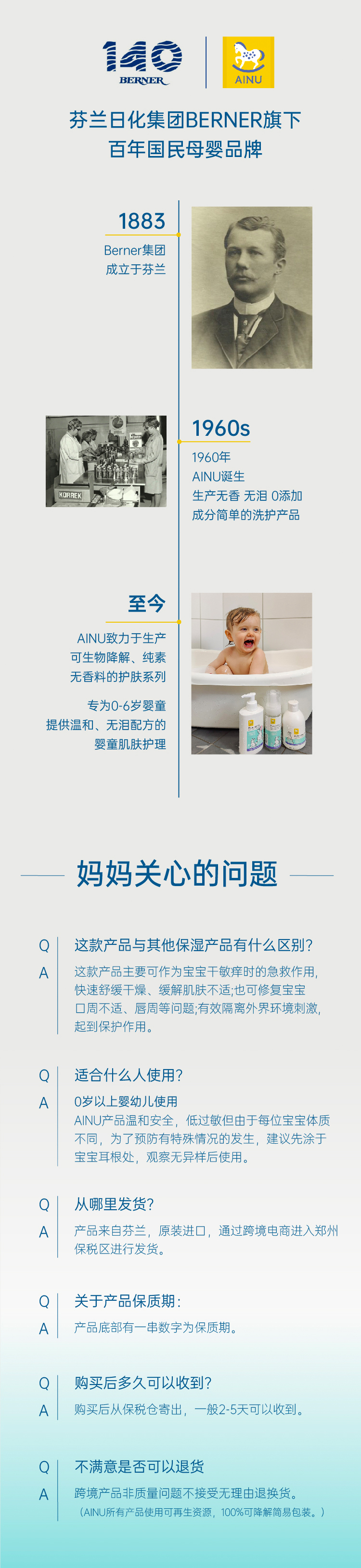 芬兰AINU国民儿童洗护 安心特护系列&燕麦特润系列 低敏温和 无香无泪配方 0有害添加 亲肤不刺激