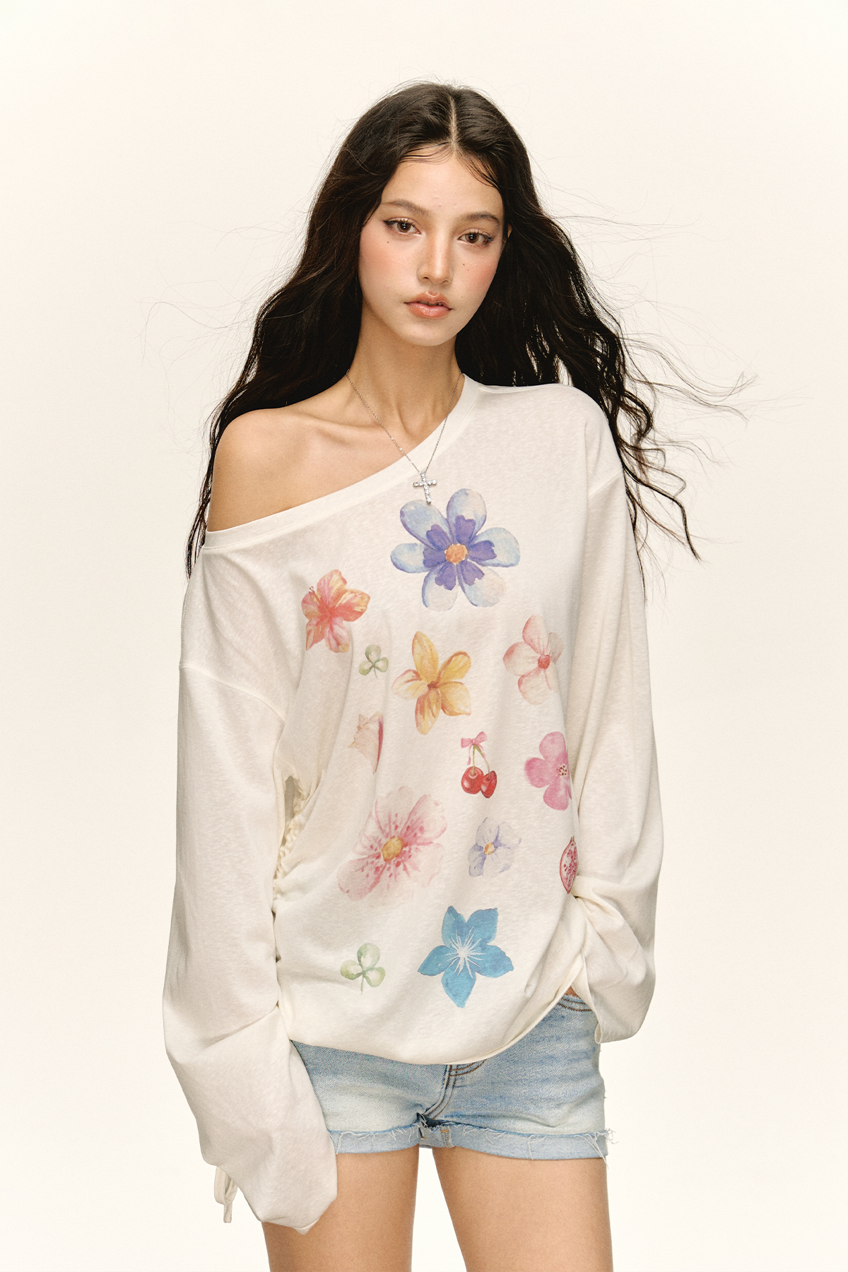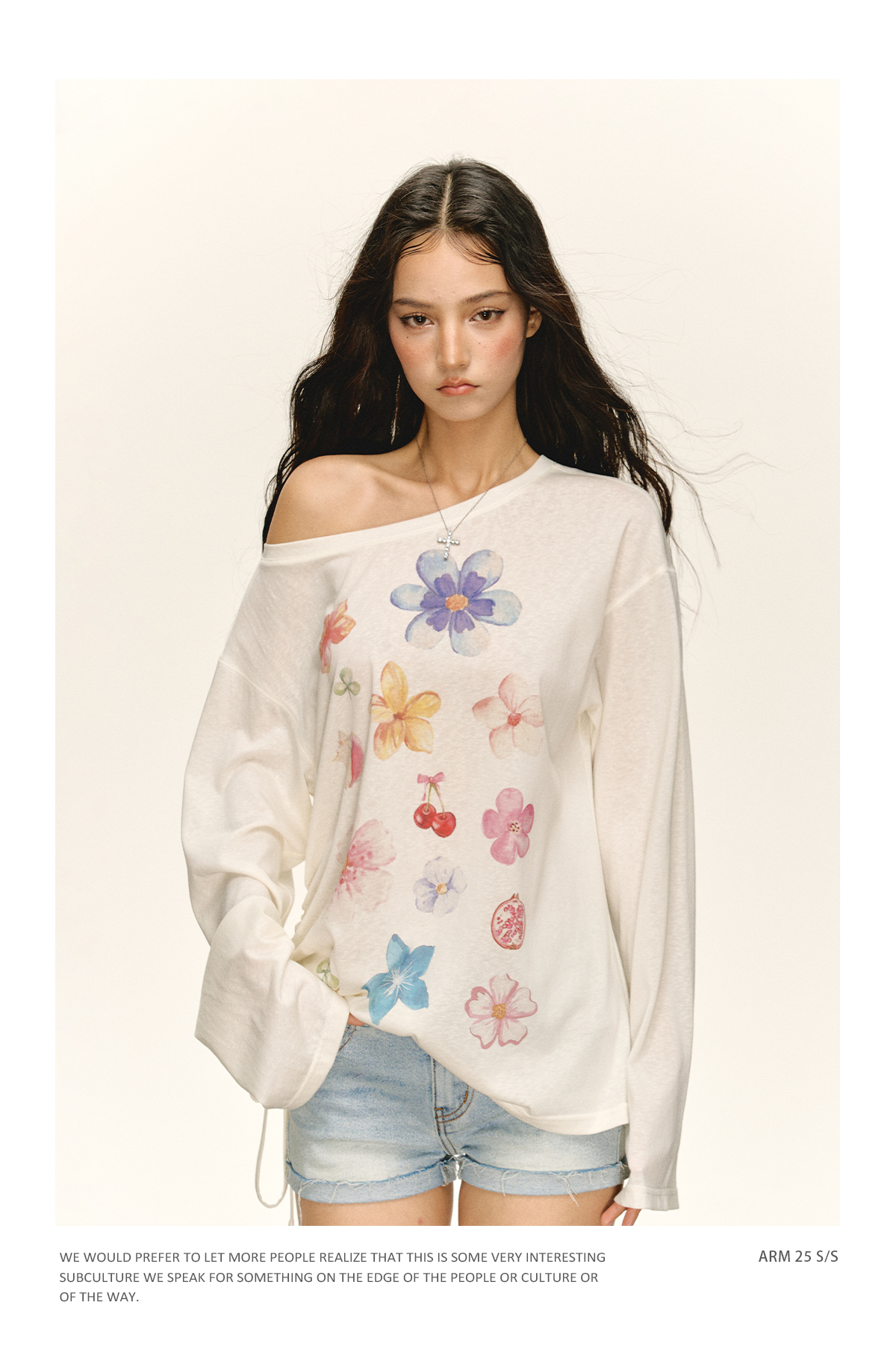 Ariseism 美式复古设计感宽松斜肩罩衫长袖t恤女秋季新款修身上衣