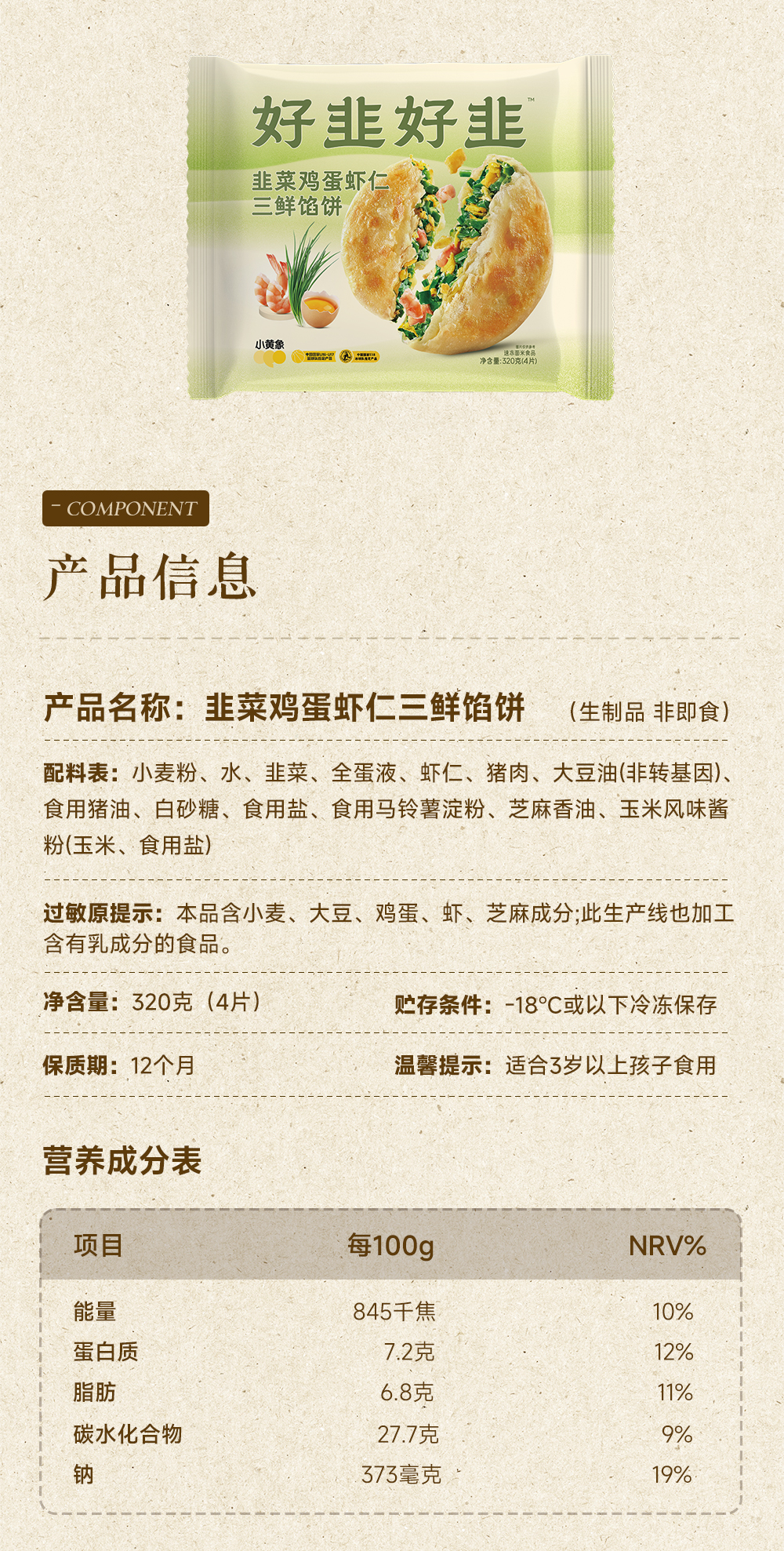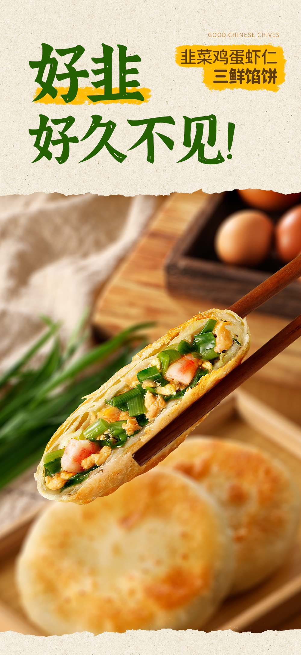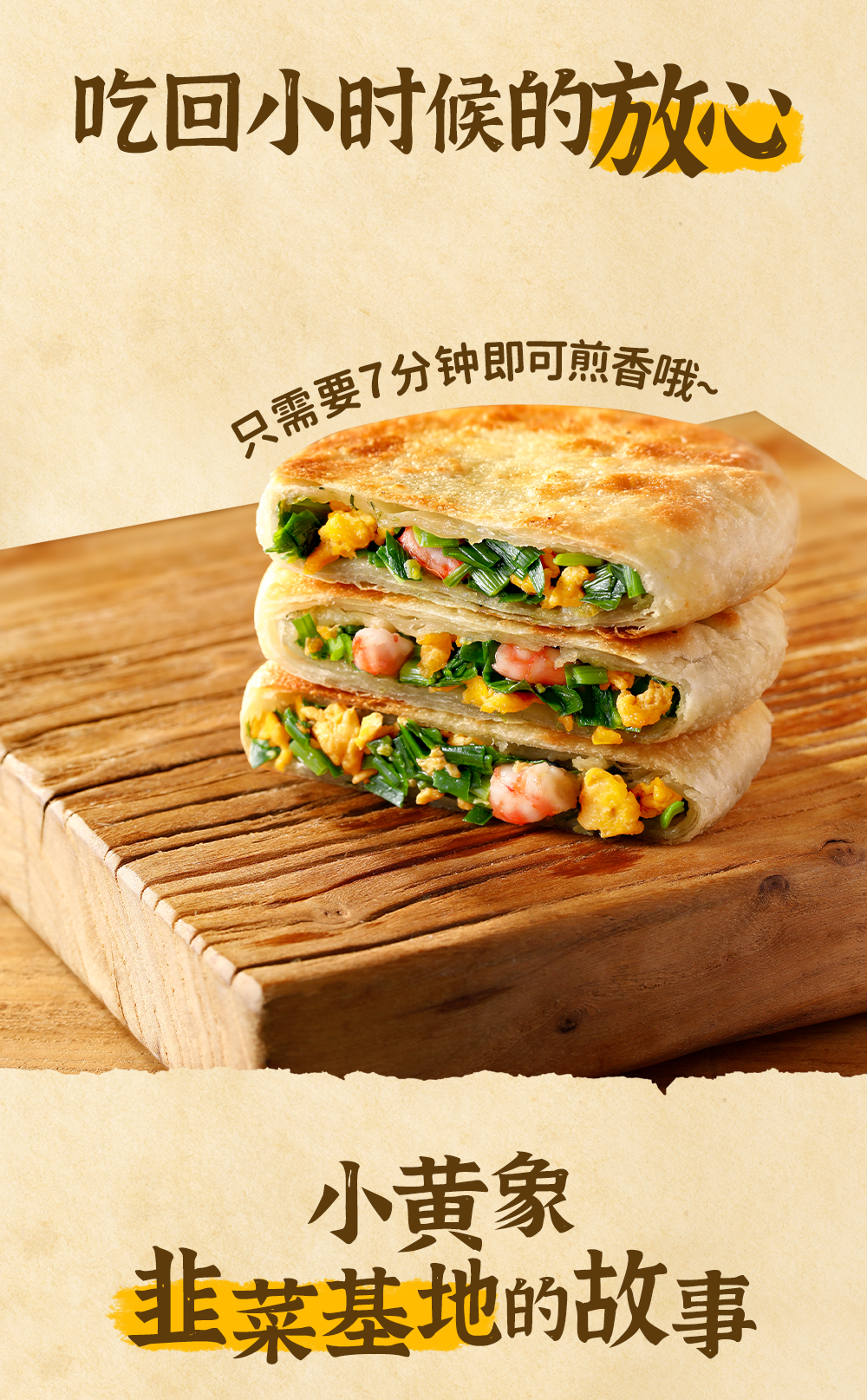 小黄象韭菜鸡蛋虾仁三鲜馅饼