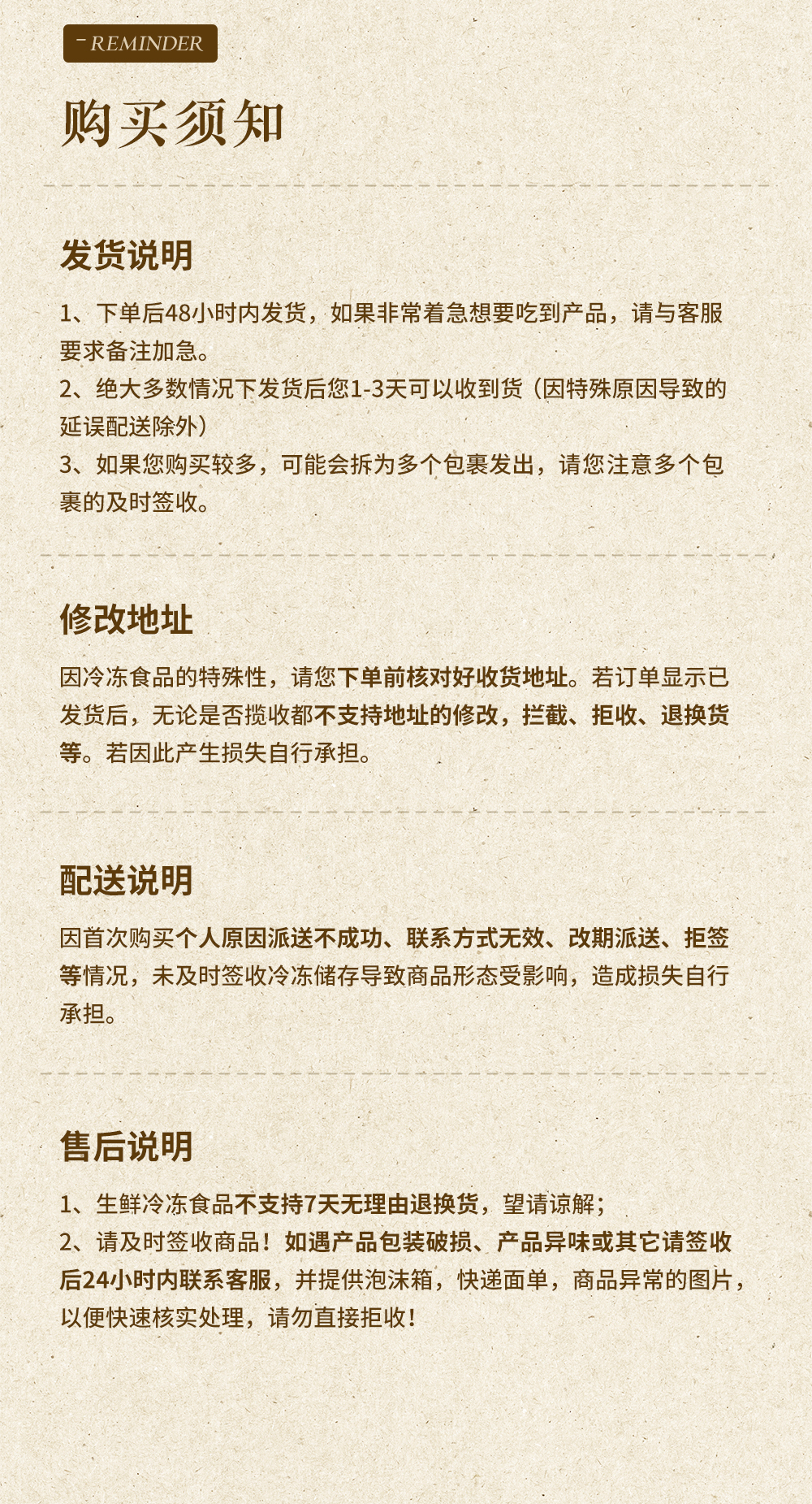 【售后标准】:食品非质量问题,不支持7天无理由退换货