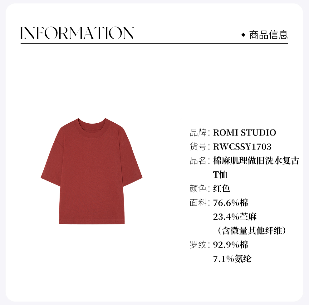 ROMI STUDIO“基础随性”汉麻棉混纺肌理感圆领短袖T恤 RWCSSY1703