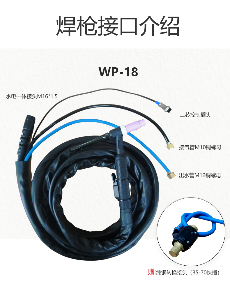 上海沪工氩弧焊枪【WP-18】分体式水冷枪4米8米氩弧焊机配件增一体转换接头