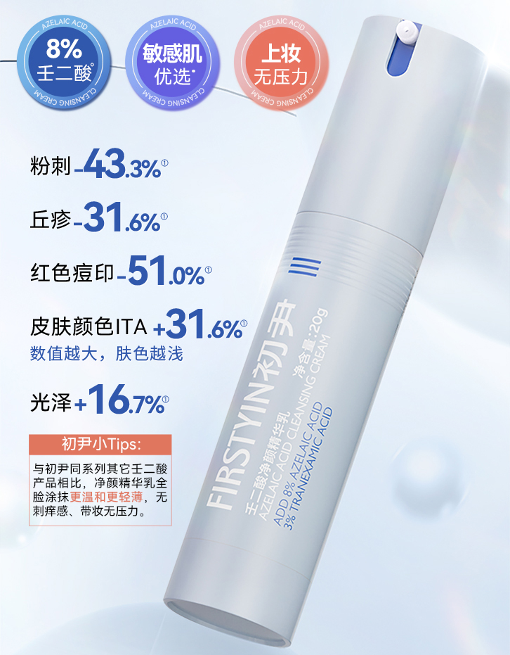 初尹8%壬二酸净颜精华20g 控油、祛痘、舒缓、敏感肌适用