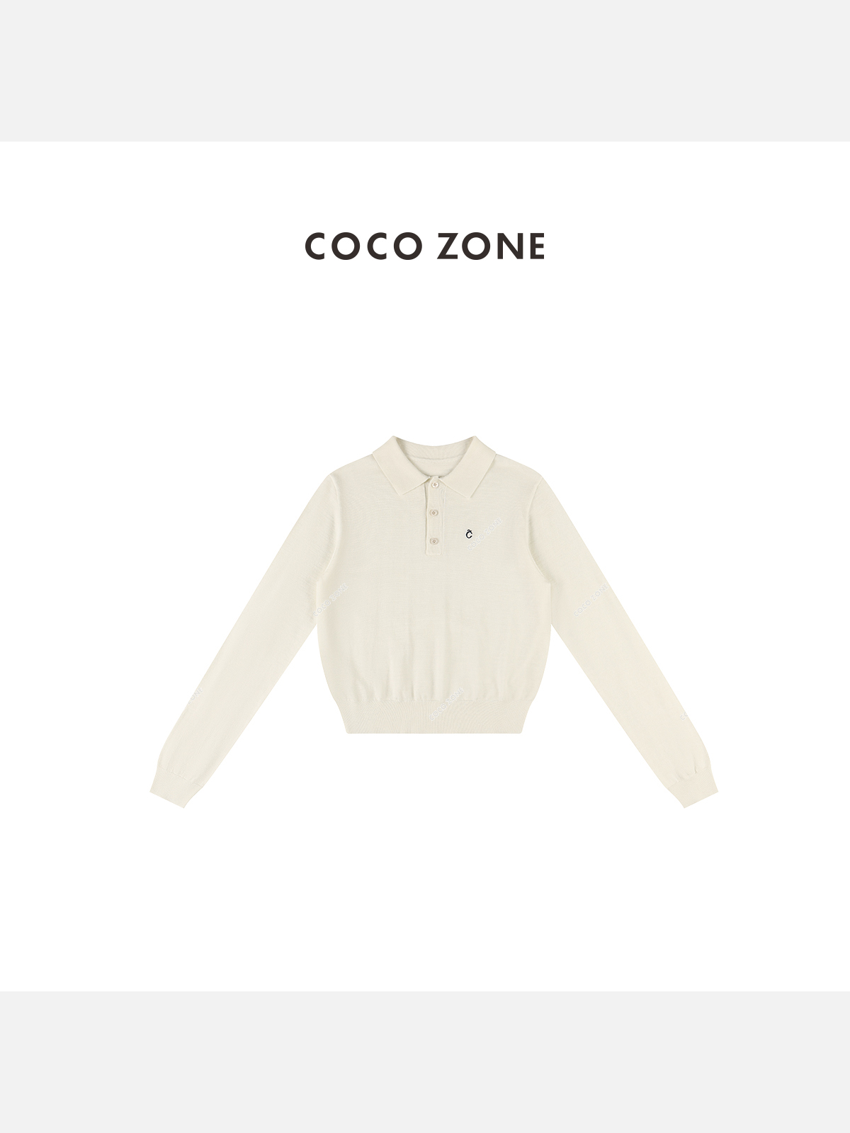 COCO ZONE 早秋款POLO领针织衫上衣前左带有绣花设计 23C19197