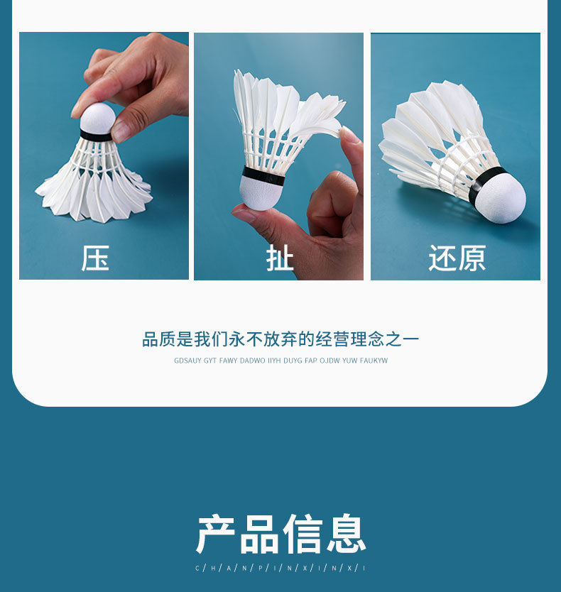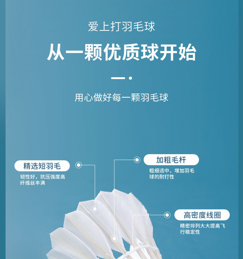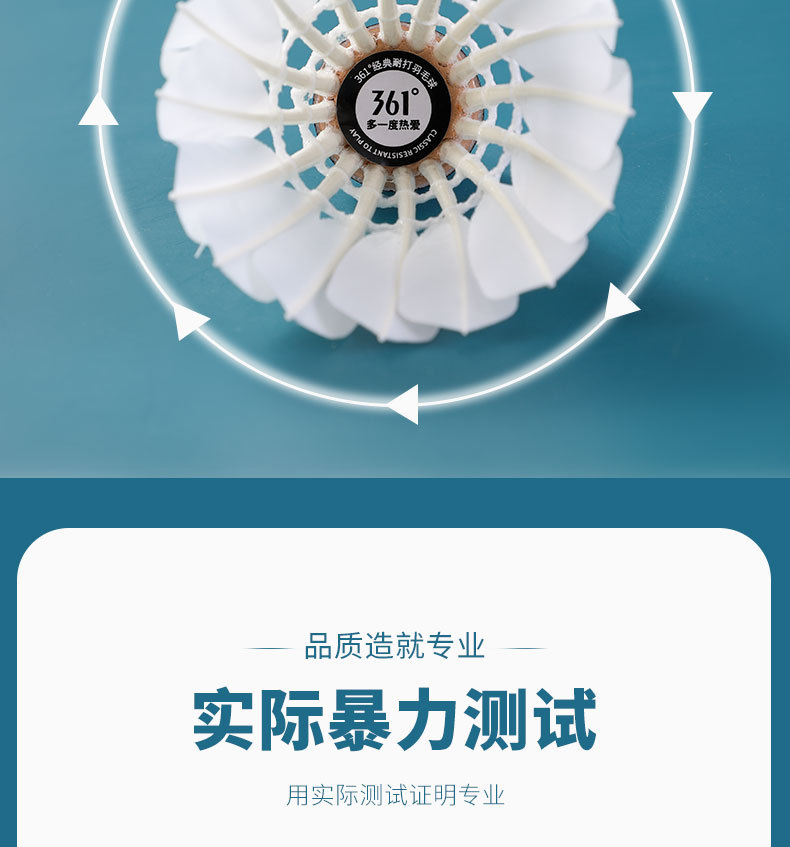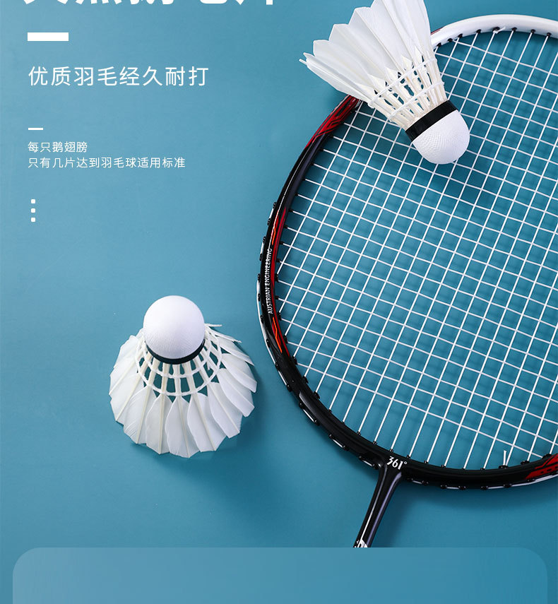 361度羽毛球稳定鹅毛耐打不烂专业户外室内训练软木球头比赛专用