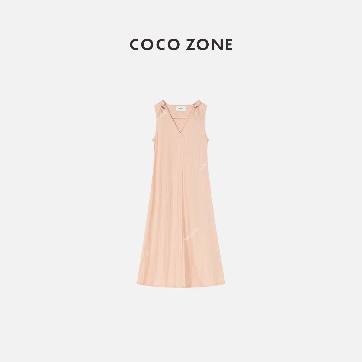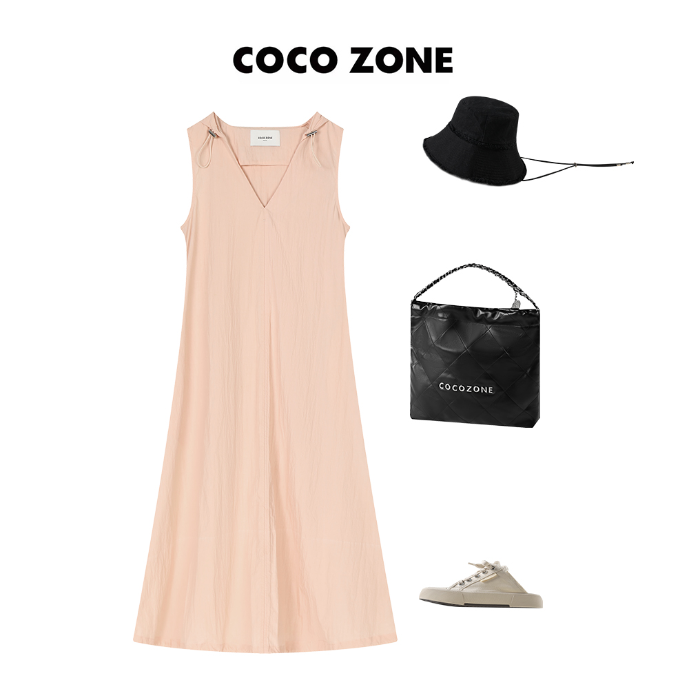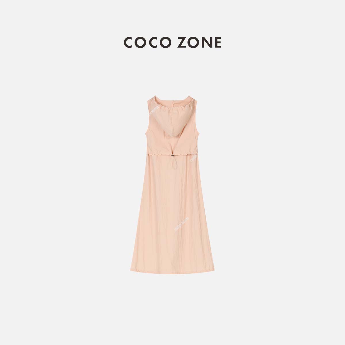 COCO ZONE 高级感连衣裙纯色无袖V领抽绳带帽裙子 23C18964