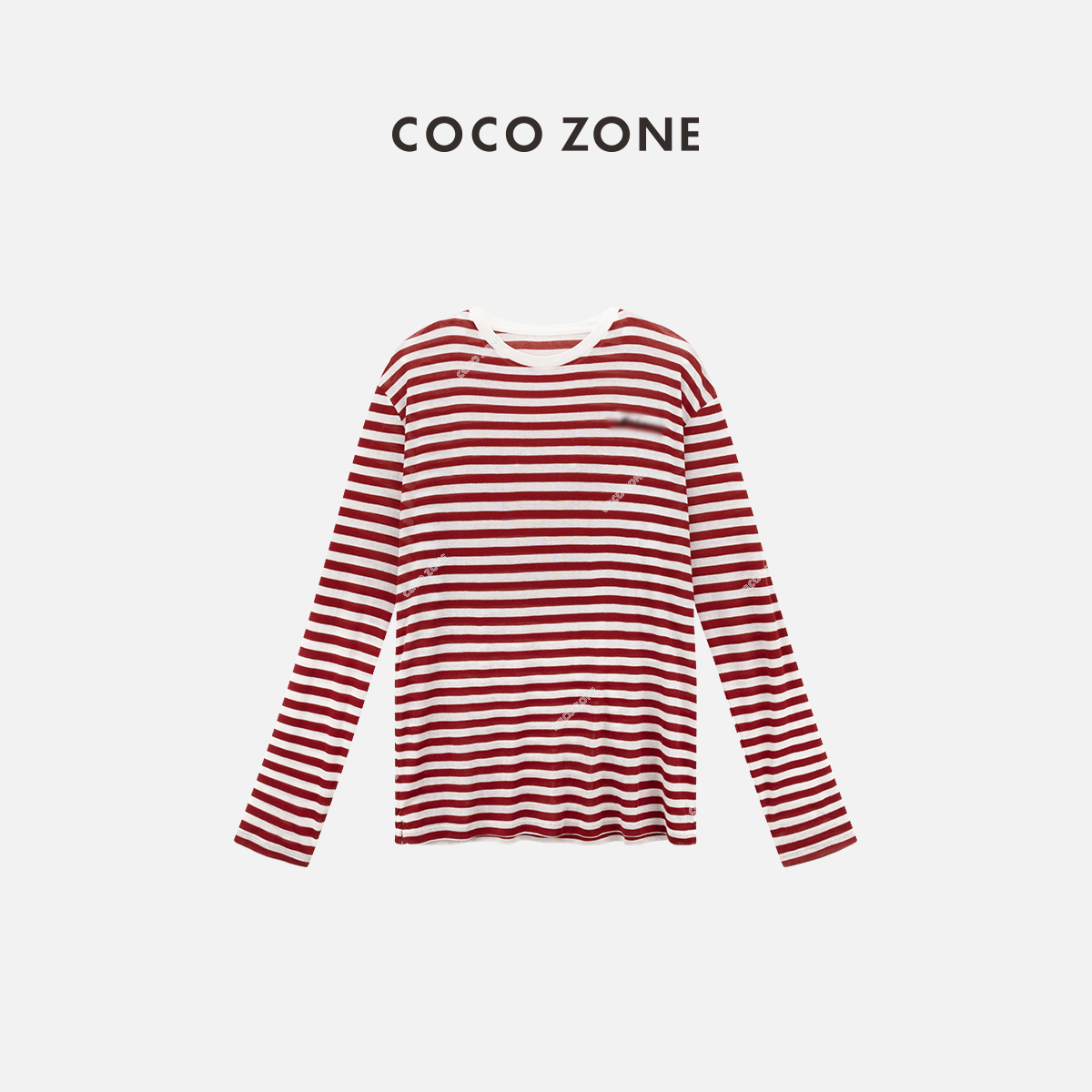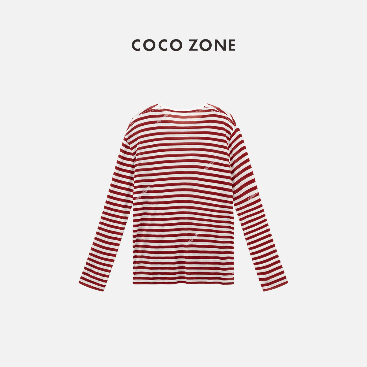 COCO ZONE夏季拼色条纹圆领长袖针织衫百搭休闲套头上衣CC2B0604