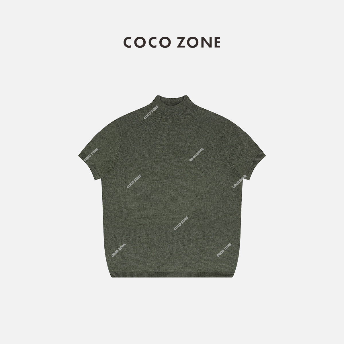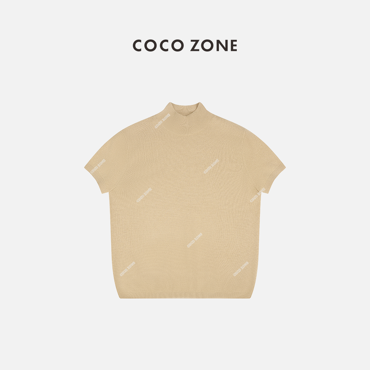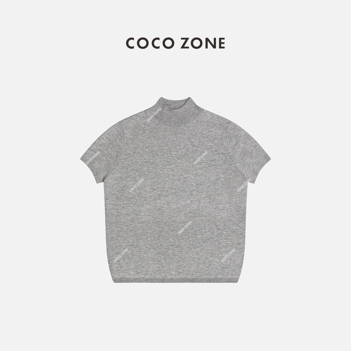 COCO ZONE半高领短袖打底针织衫百搭套头休闲毛衣24C10070