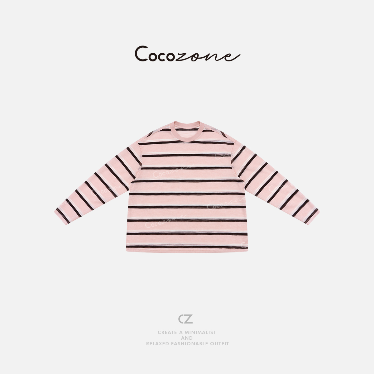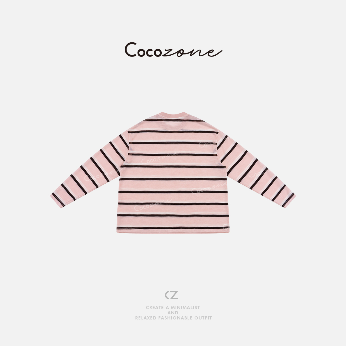 COCO ZONE刘一一 【莱赛尔混纺】条纹撞色圆领长袖T恤 CD1A0626