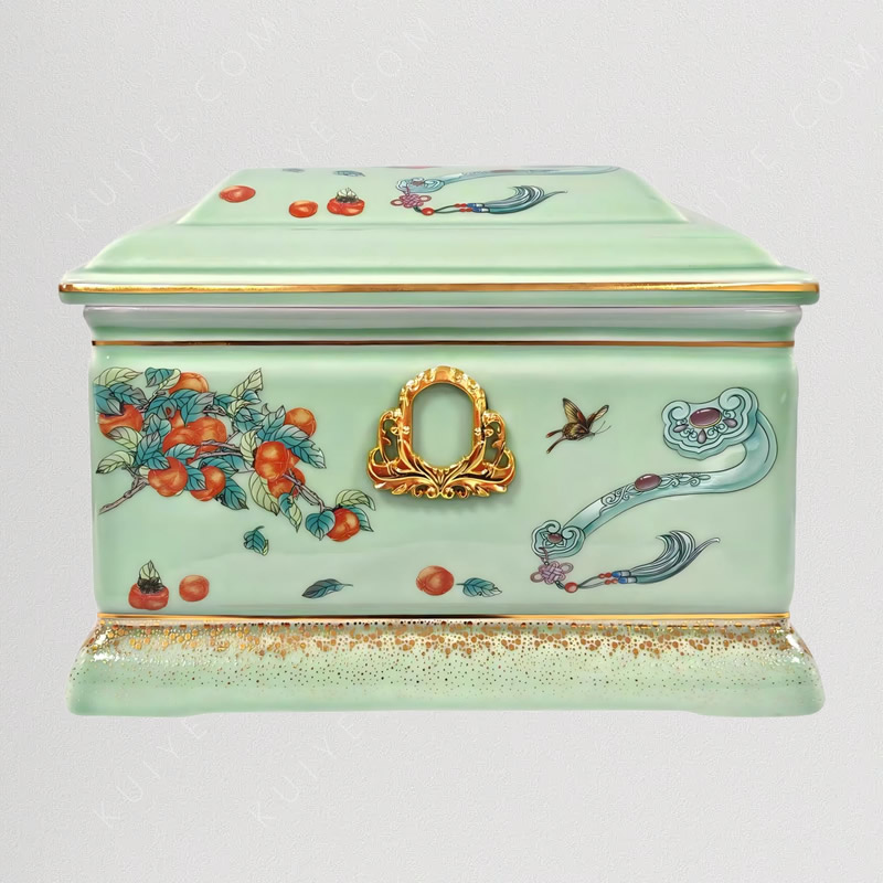 【艺德春】钢化瓷高档寿盒“如意居”(青玉)景德镇瓷骨灰盒 商品图0