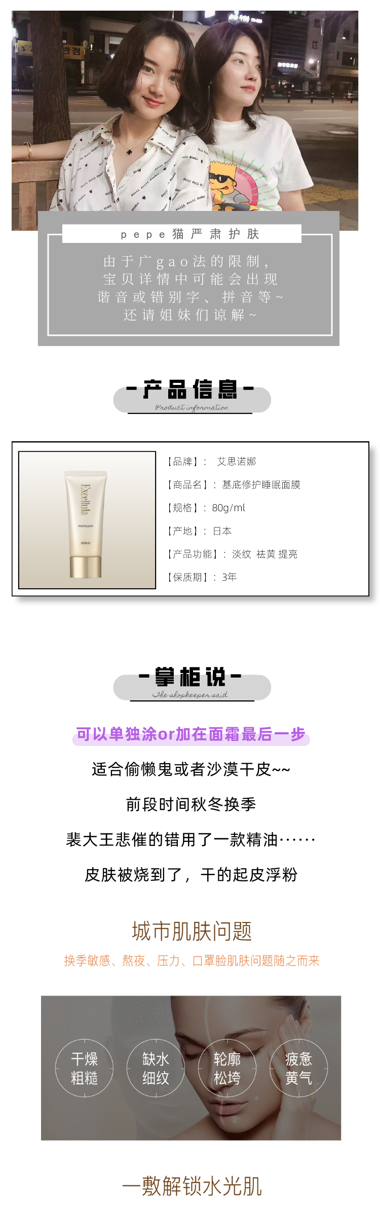 pepe猫日本Excellula艾思诺娜基底修护睡眠面膜淡纹去黄提亮80g