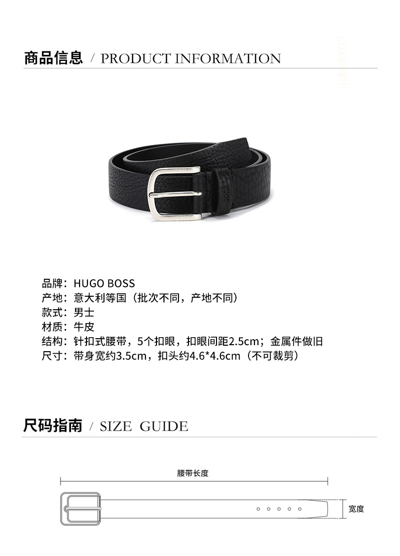 【国内现货】HUGO BOSS/雨果博斯 2021款 男士牛皮针扣式皮带腰带 50455210