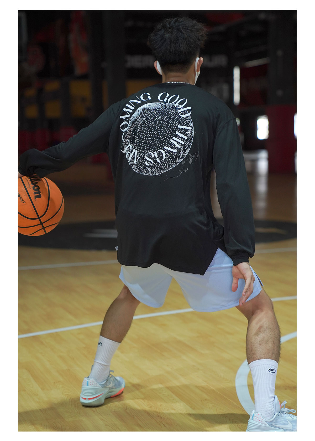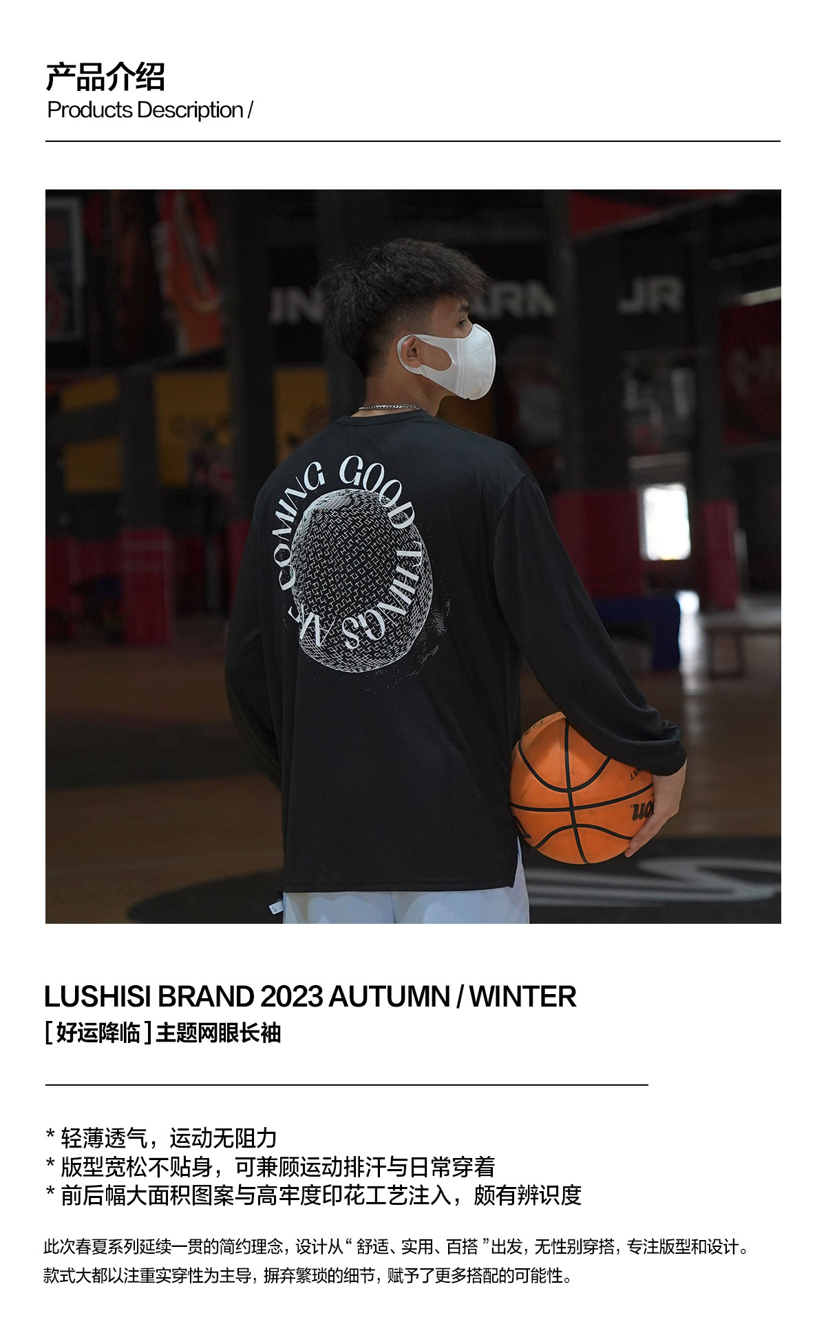 LUSHISI追光逐梦主题印花美式投篮服速干长袖t恤运动跑步休闲街头