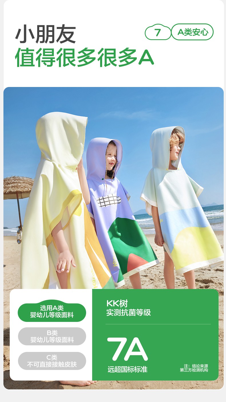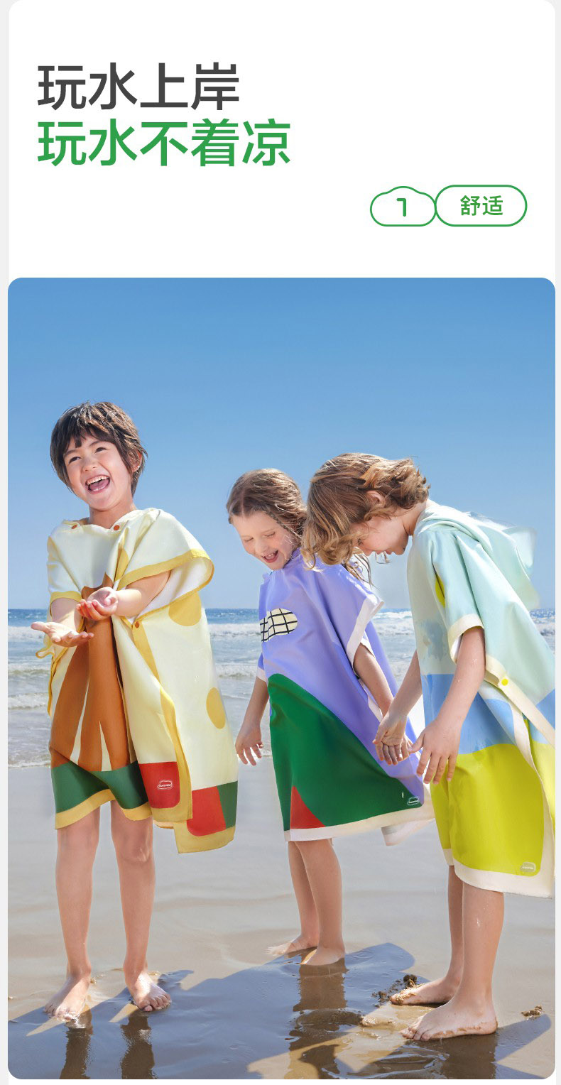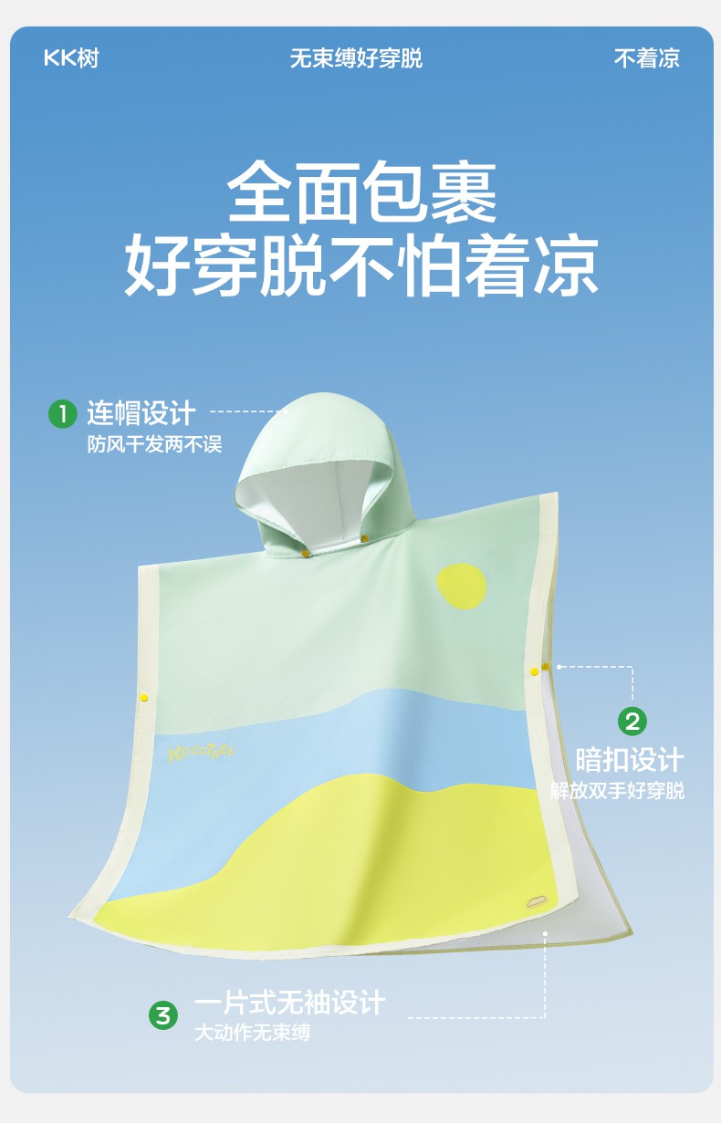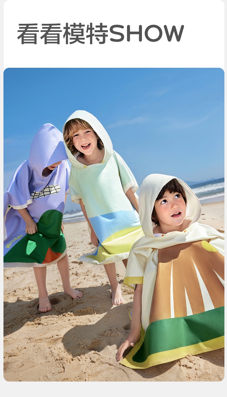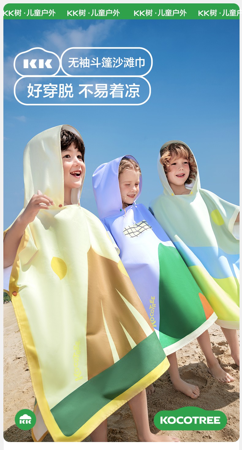 KK树儿童浴巾游泳专用浴袍宝宝海边沙滩巾吸水速干男女童斗篷毛巾涂鸦艺术家斗篷沙滩巾