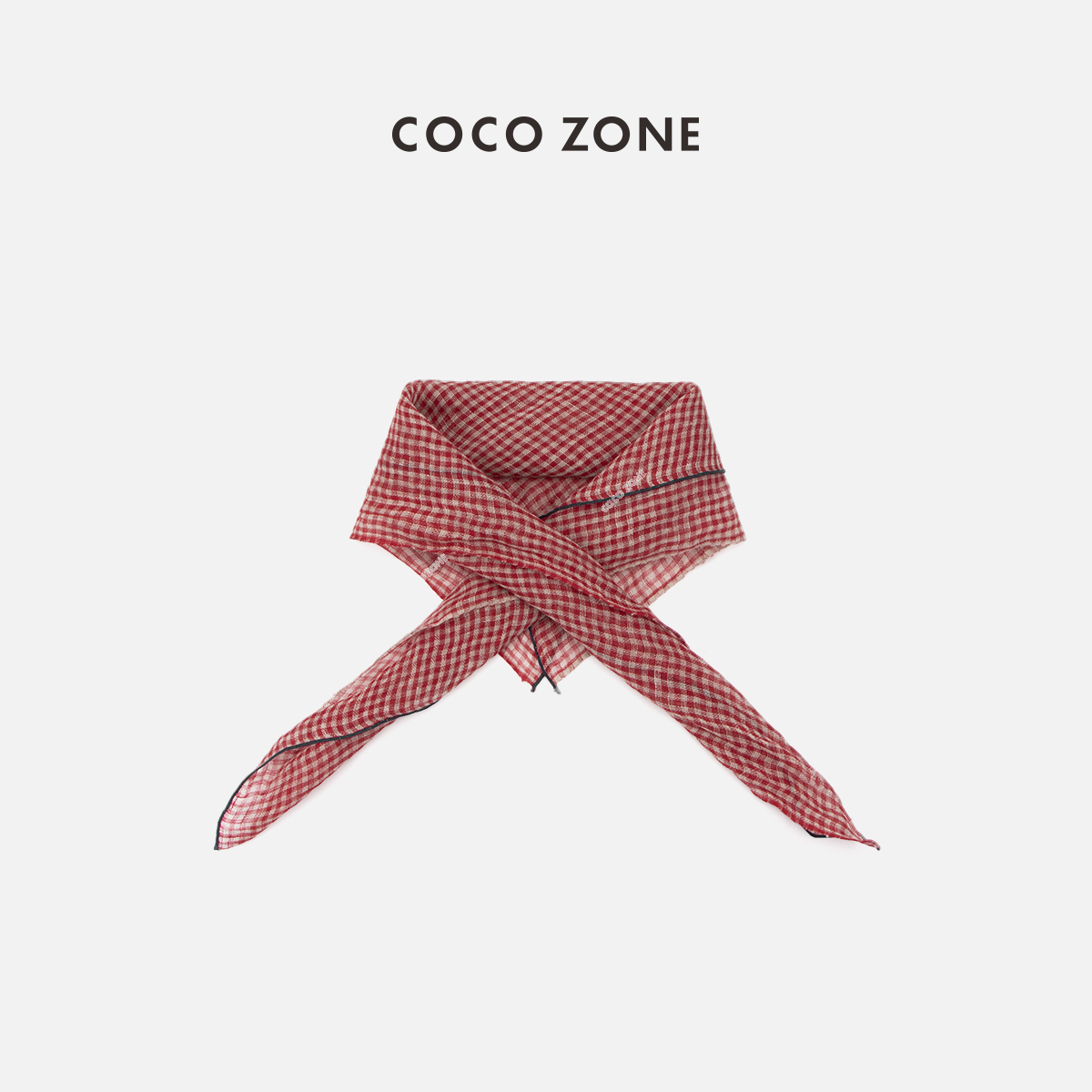COCO ZONE2024时尚复古格子小方巾简约百搭撞色小丝巾CC2B0782