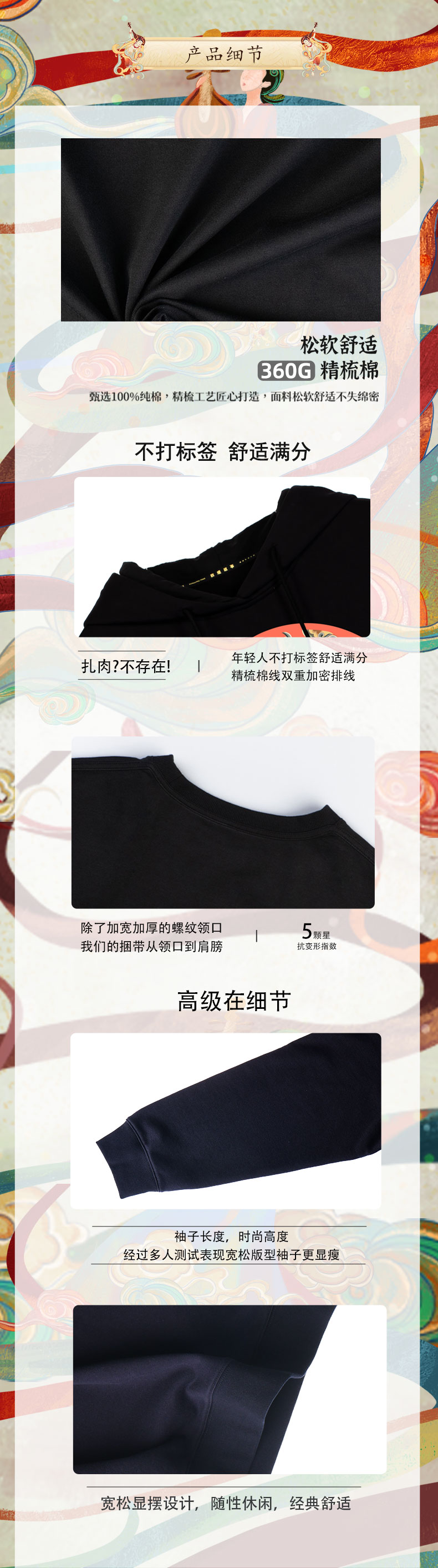 敦煌故事217窟(橙)情侣卫衣秋冬宽松连帽套头上衣男女印花棉