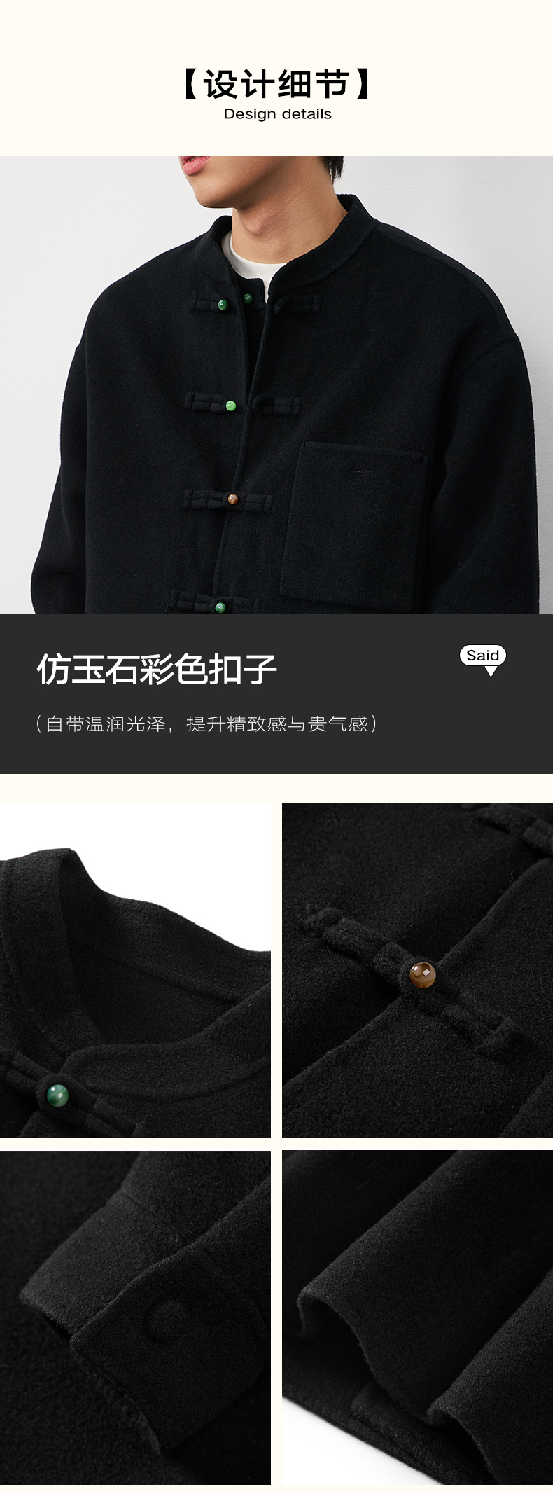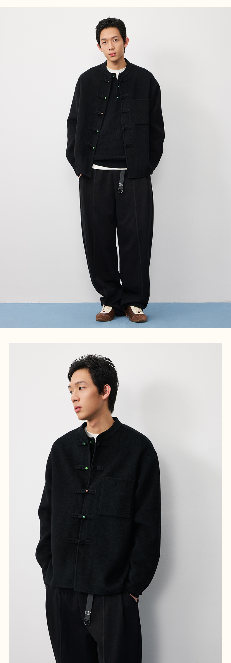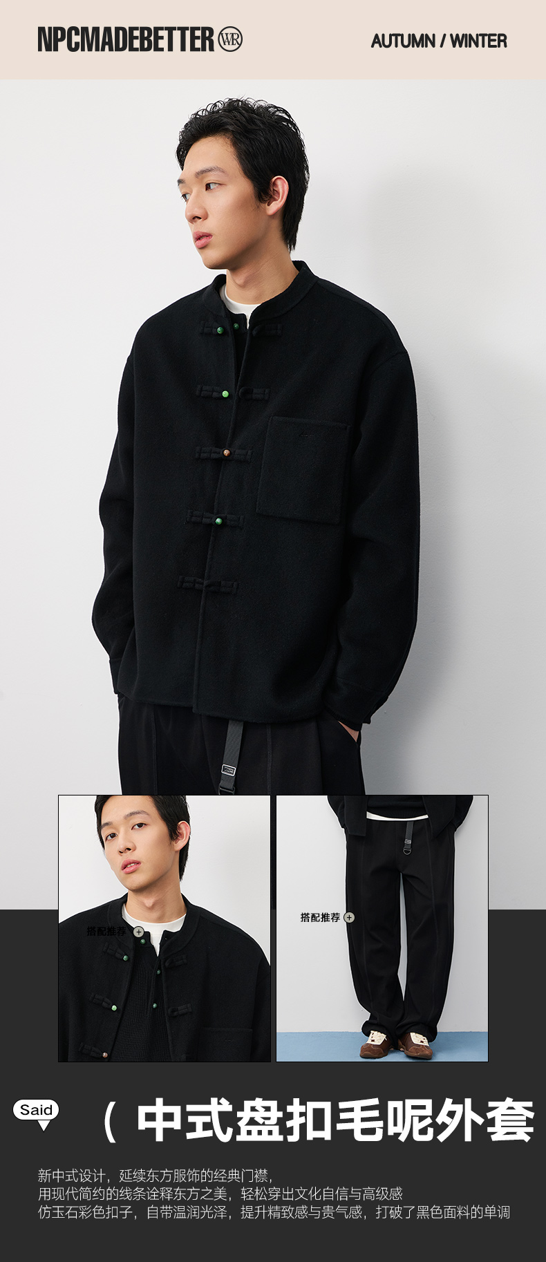 NPC潮牌100%绵羊毛新中式盘扣短款毛呢大衣休闲复古外套NP57WC39